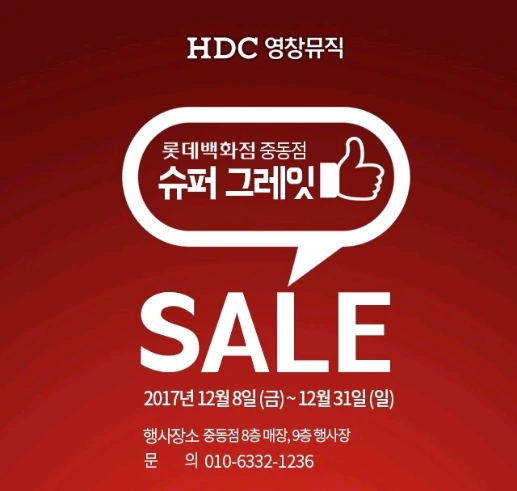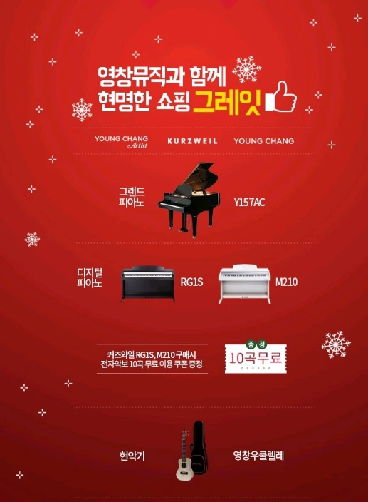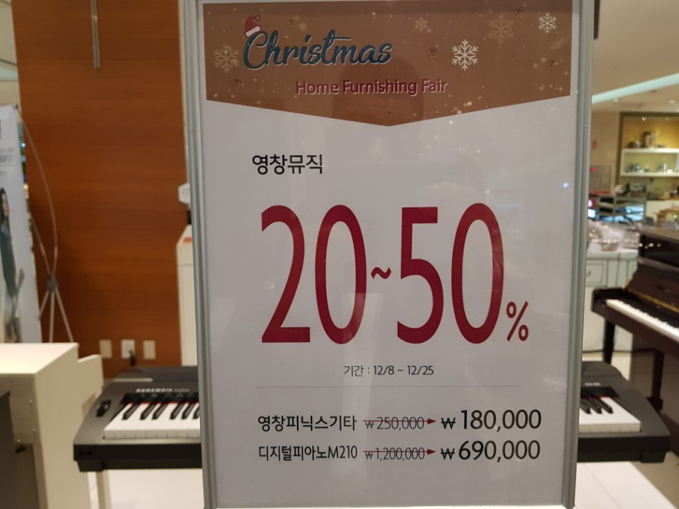 영창뮤직 20~50%, 12/25까지, 성탄선물 두둥