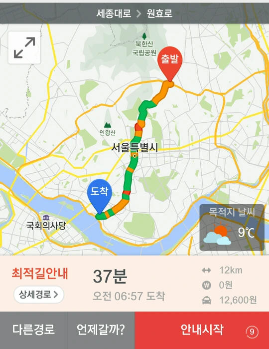 결국 티맵이 예상한 시간보다 더 일찍 도착했다. 57분 도착예정이였는데, 48분에 도착하였다.