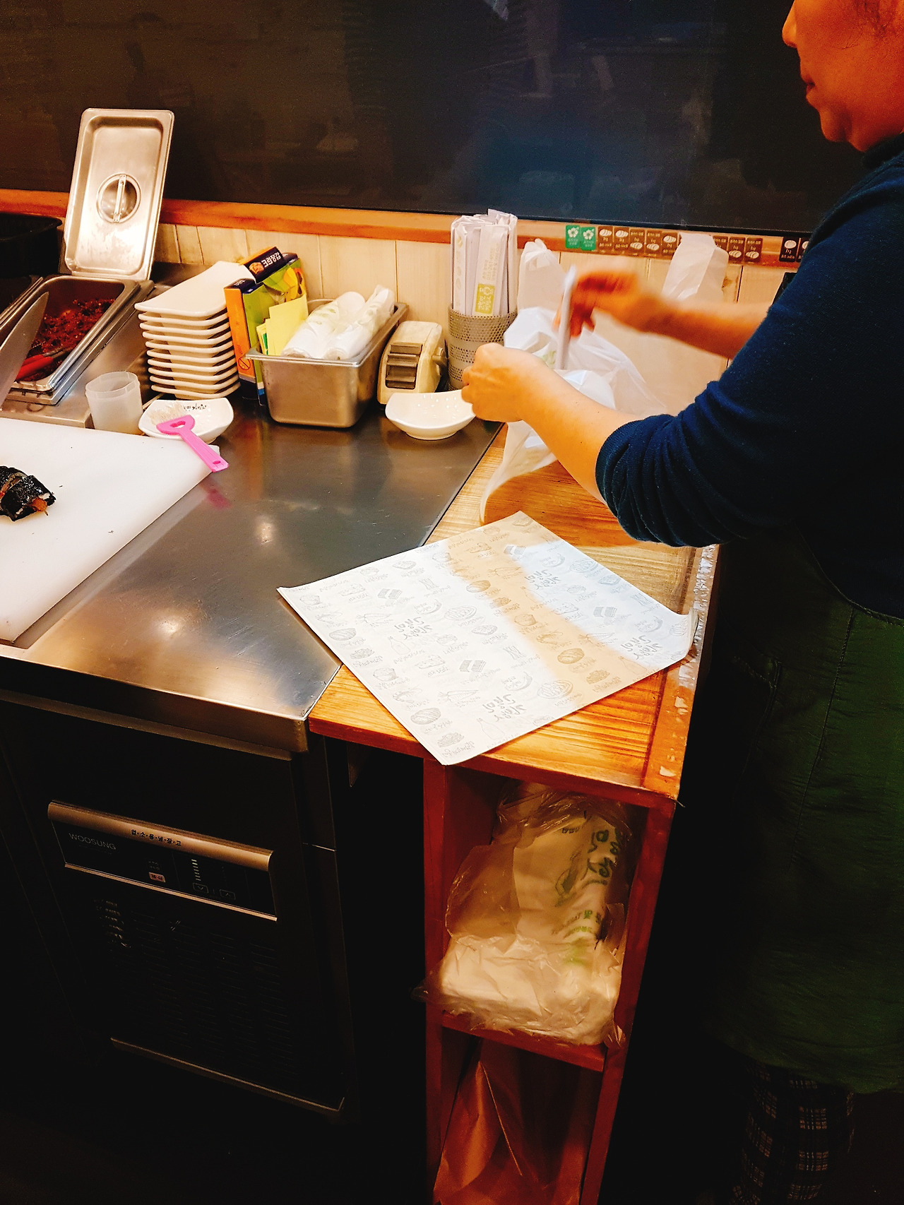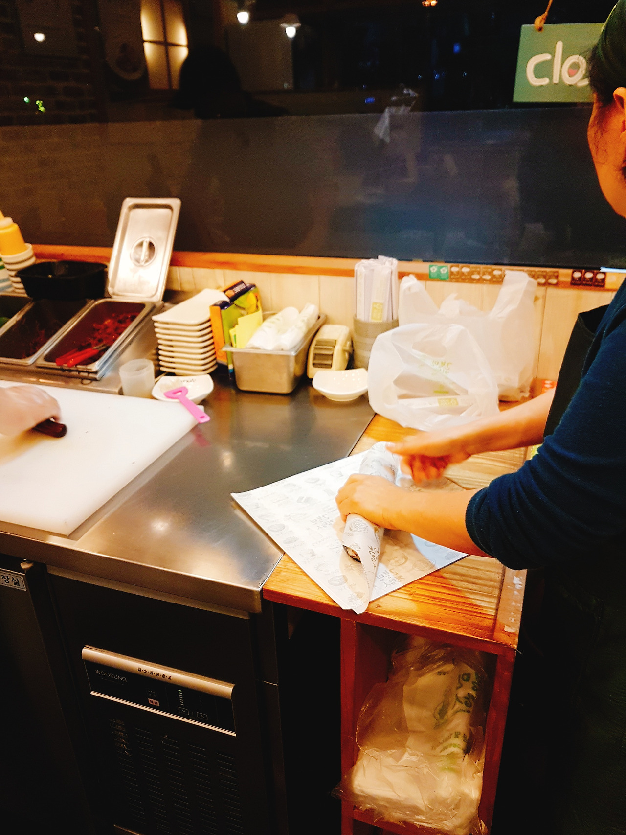 주밀 늦은저녁 서울 가는 길에 김밥한줄을 산다.
