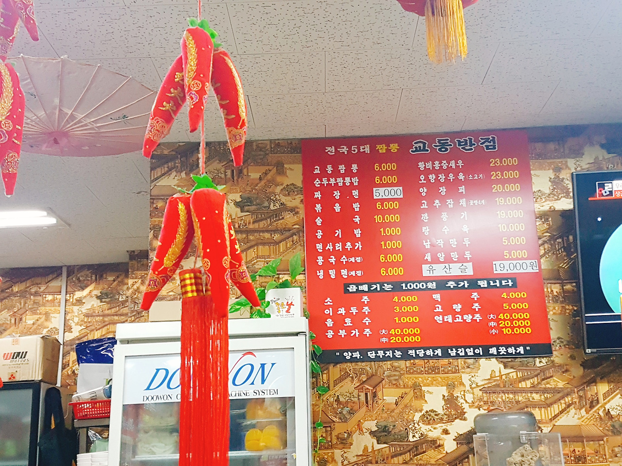 간판은 교동짬뽕, 구석구석에는 교동짬뽕이라고 적혀있다. 병행하면서 사용되는 이름이지만, 공통분모는 교동이다.