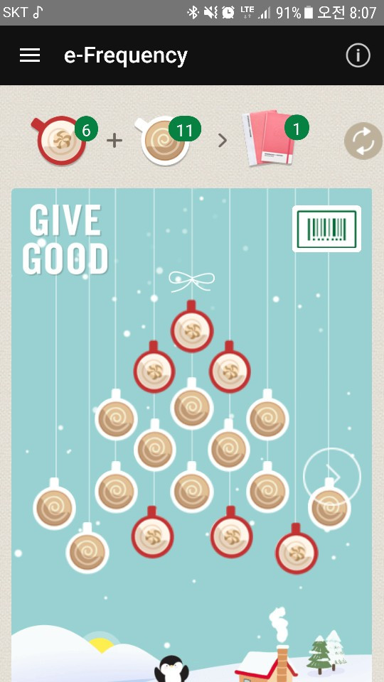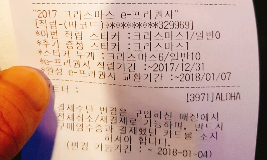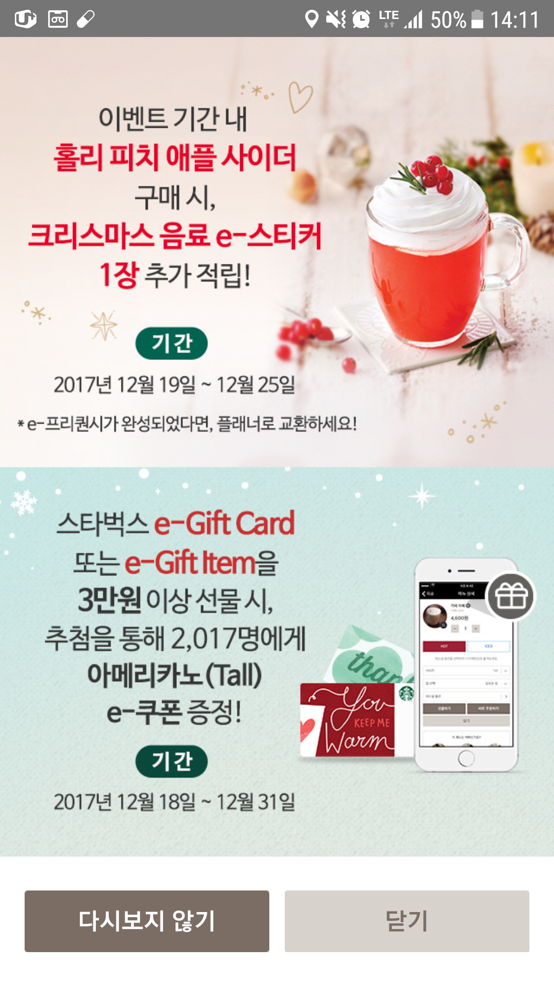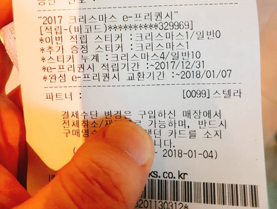 혜택: 크리스마스 음료 e-스티커 1장 추가 적립(합이 2개)