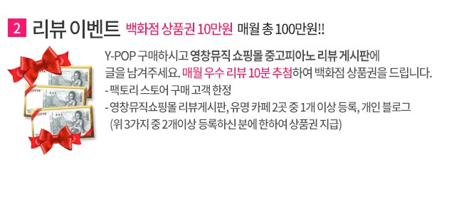 이벤트 페이지는 영창뮤직 사이트에서 획인이 가능합니다.