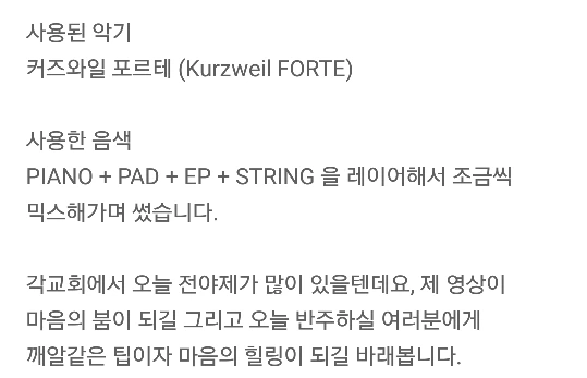 반주 화면으로 구성 된 실황영상은 분명, 디지털피아노, 신디사이저 반주에 관심있은 분들에겐 피가 되고 살이 된다.