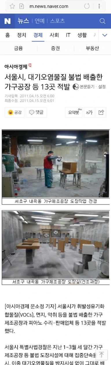 .내용 : 서울시 적발, 도장처리시설 허가, 인체피해