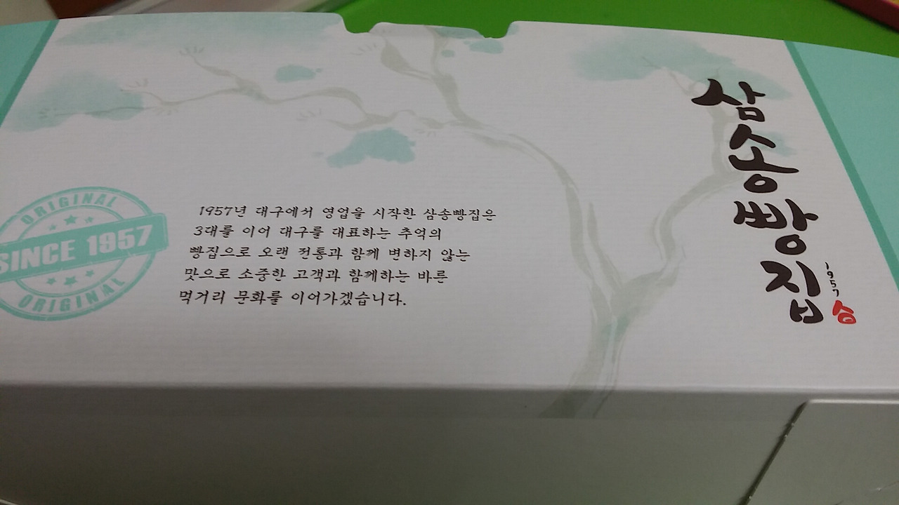 빵 상자에는 빵집 설명이 있었다. 1957 년 대구에서 영업을 시작했다는 것이다. 3대째라고 한다.