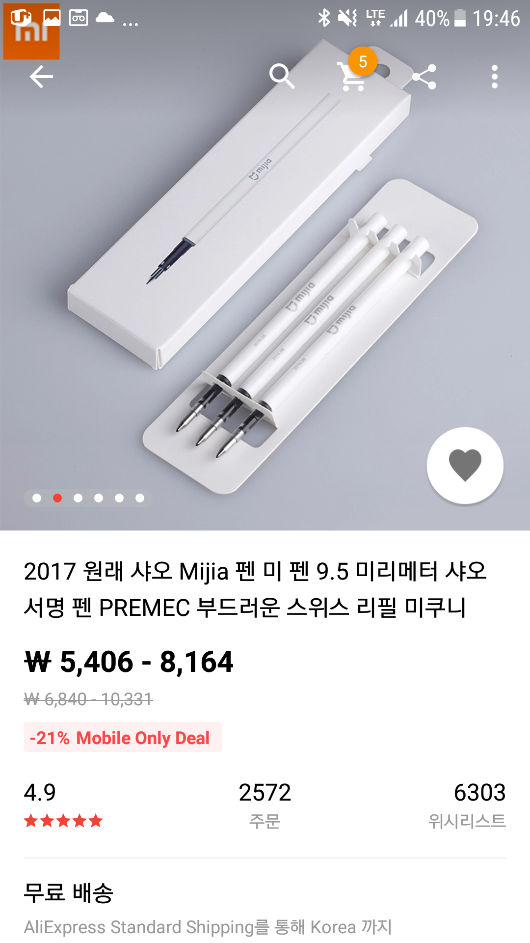 친구가 미펜 하나 얻었다는데 잘써진가고 해서 하나 주문해 보았다. 진짜인지는 모르지시겠만 몽블랑펜 사서 속의 볼펜심은 샤오미 심을 쓴다고들 하는데, 그만큼 괘안타고 한다. 그래서 알리익스프레스에서 일단 지른다.