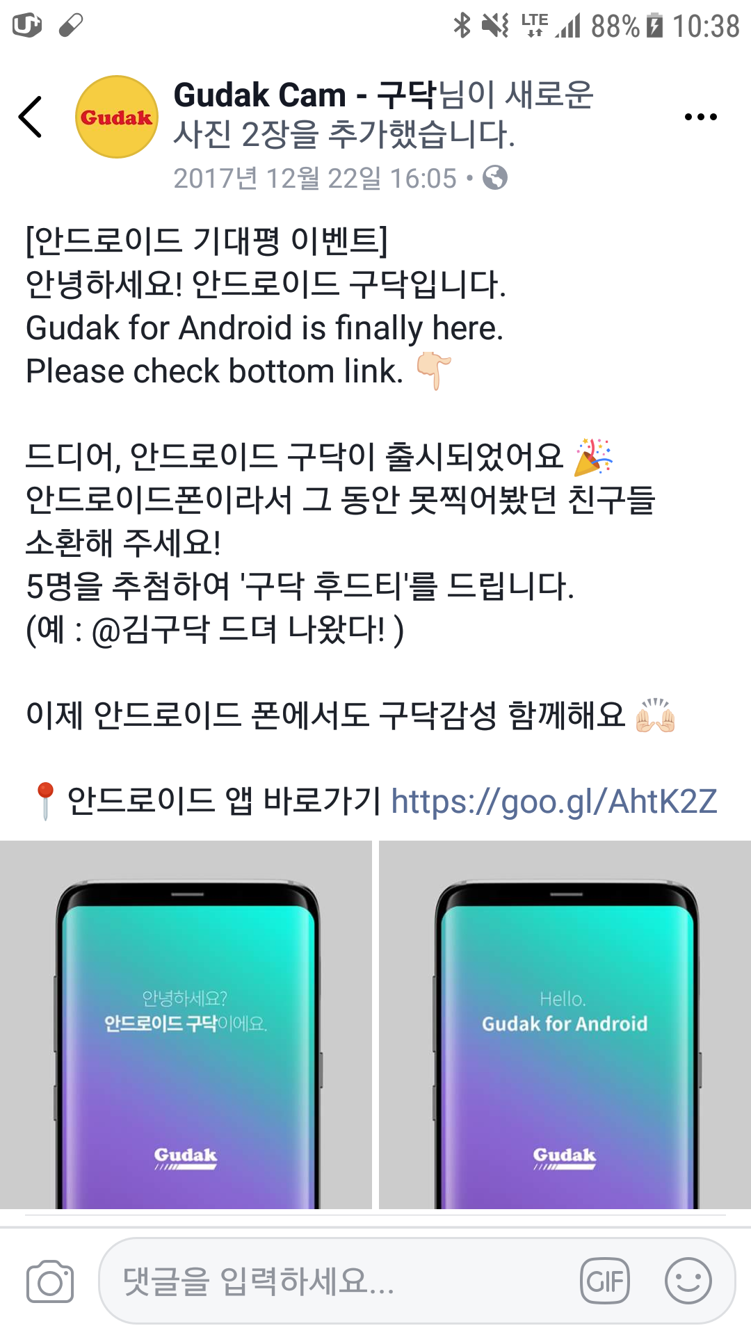 그래서 페북부터 등록했다. 그리고 안드로이드버젼이 나오길 기다렸다.