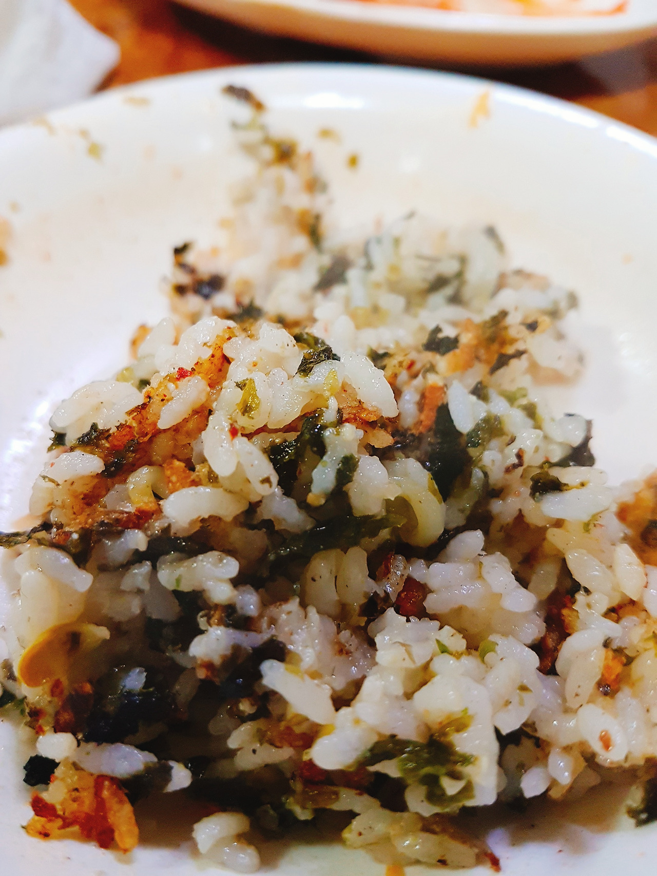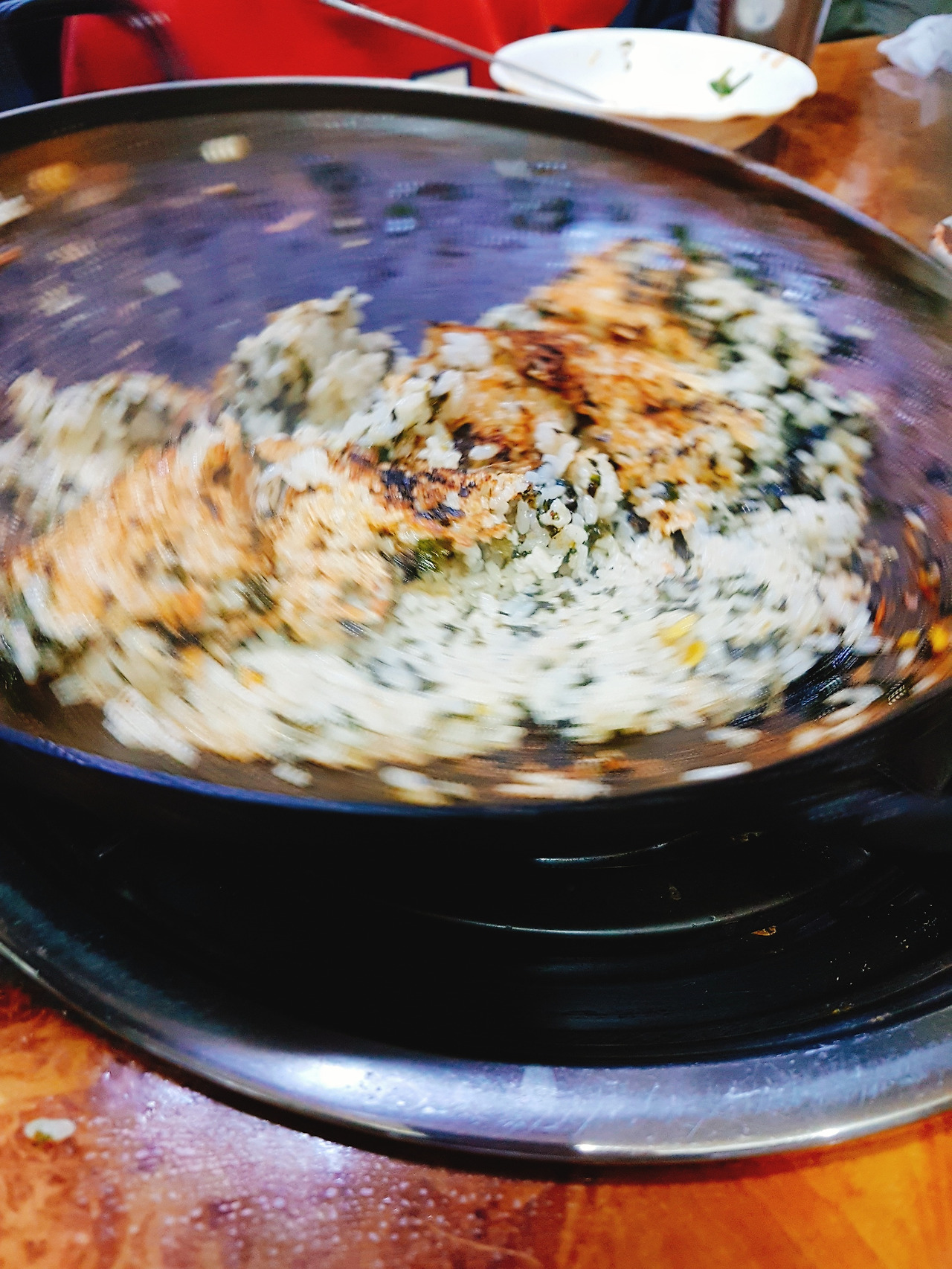 요사진이 최고인데 누룽지 볶음밥 사진이 그 느낌을 못 담아낸다.