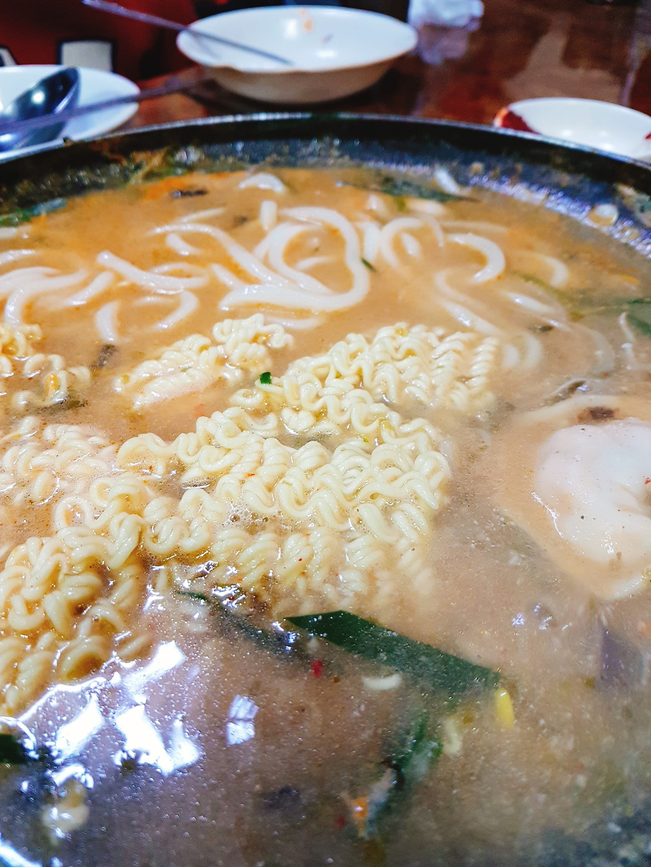 만두전골로 속을 따습게 하고 면으로 입감을 풍성하게 하고, 누른밥으로 배를 채운다.
