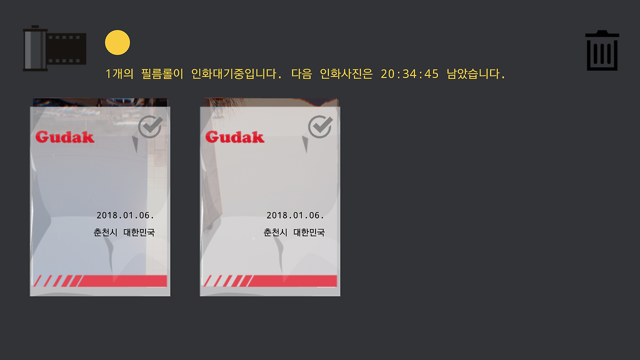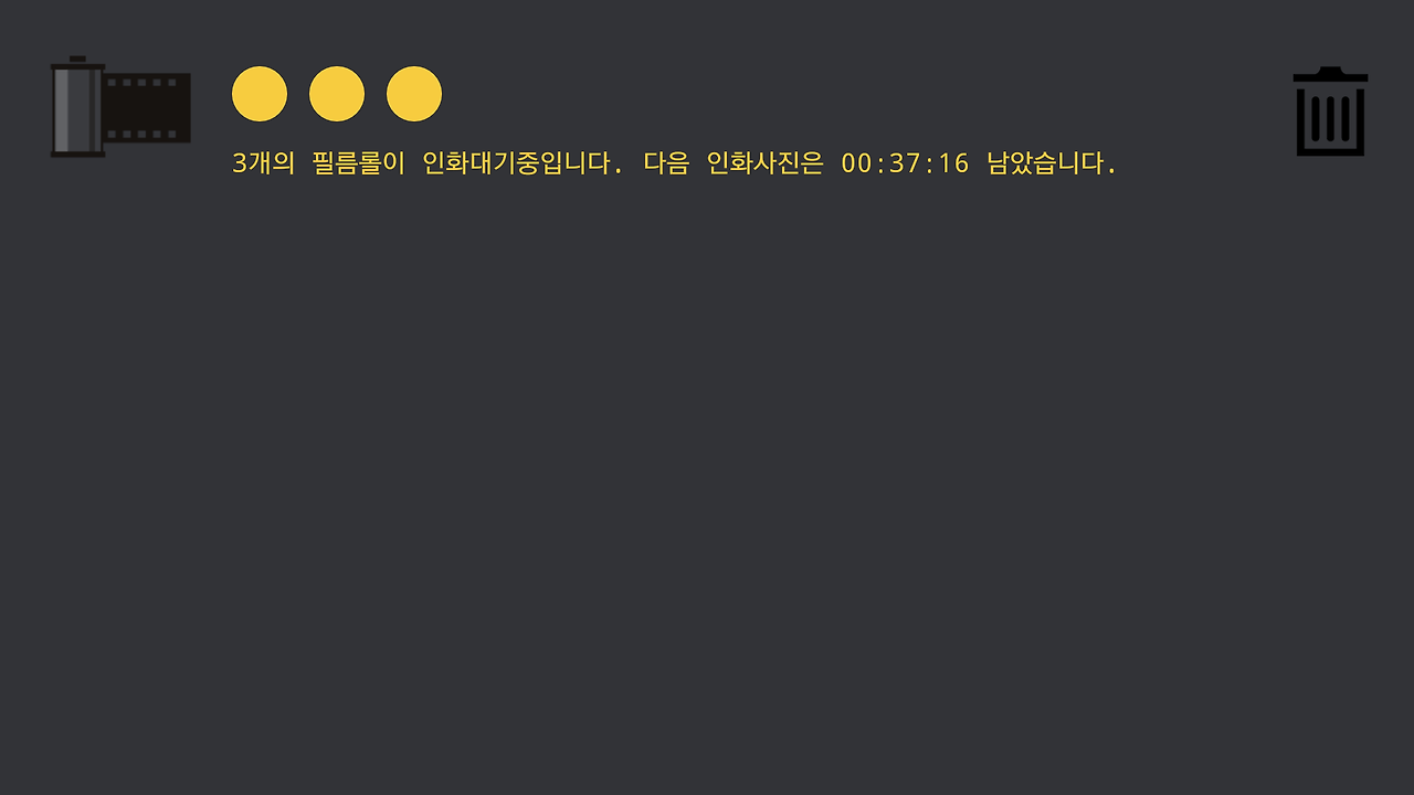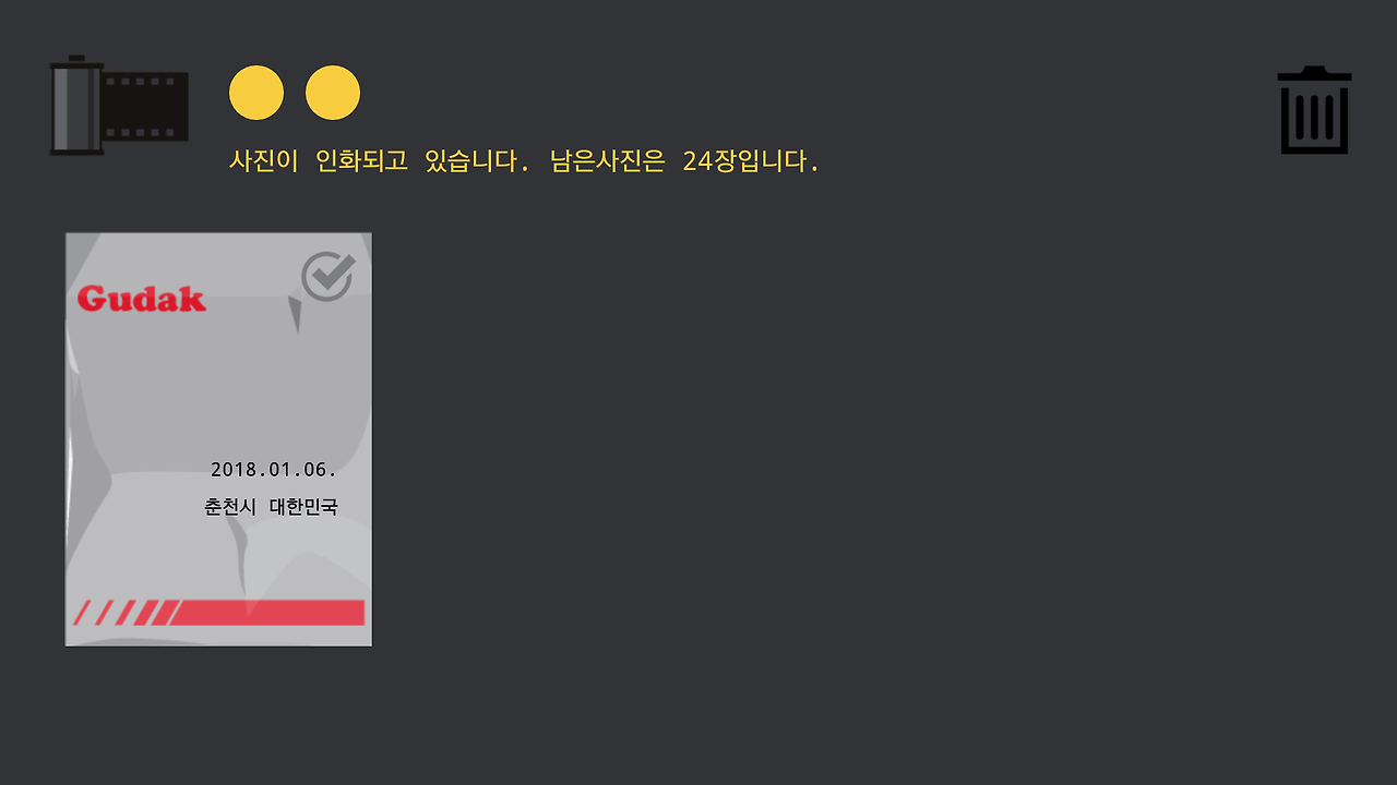 필름통을 누르면 인화 된 사진들이 나온다.