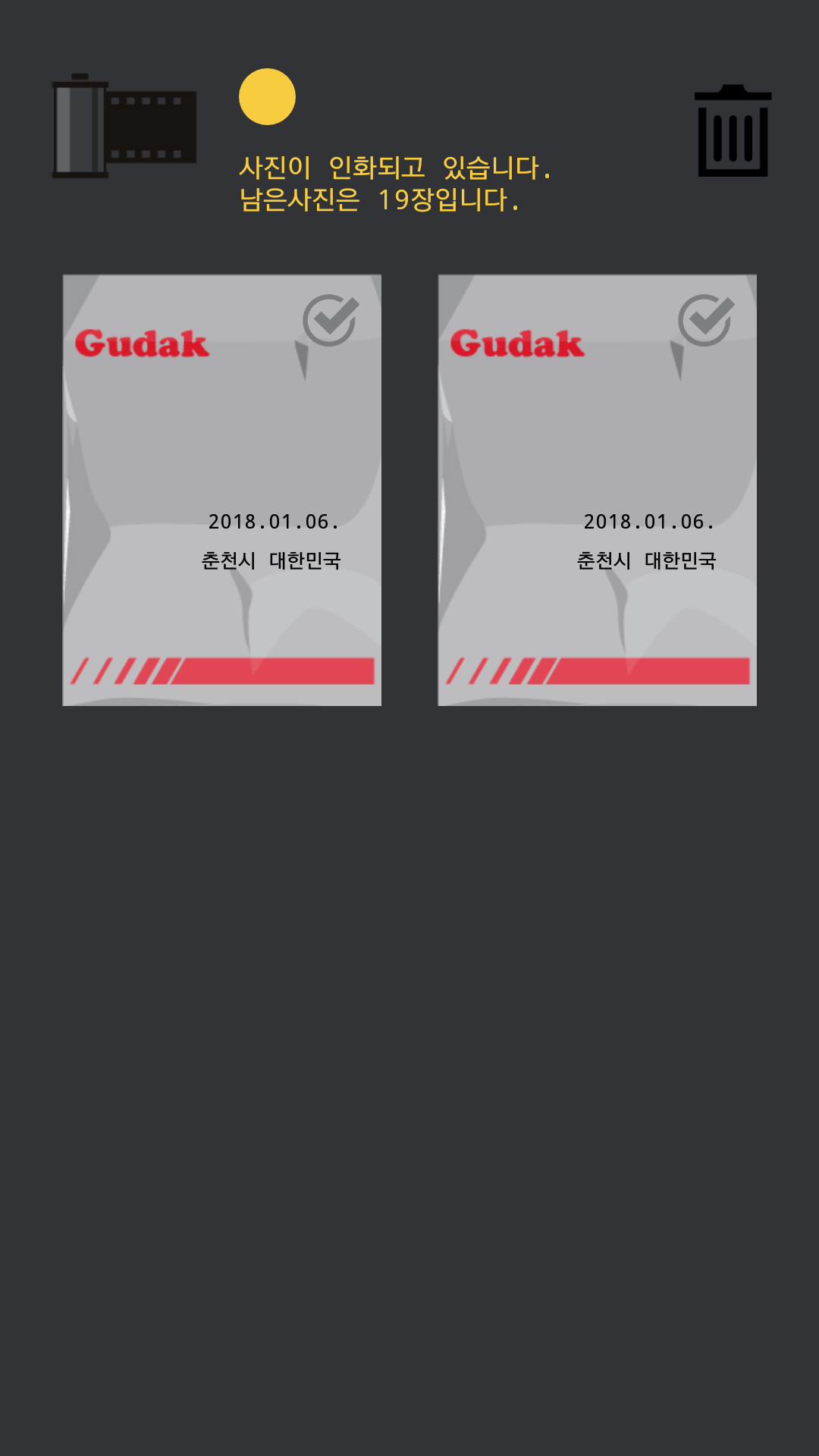 사진 인화 상태가 나온다.