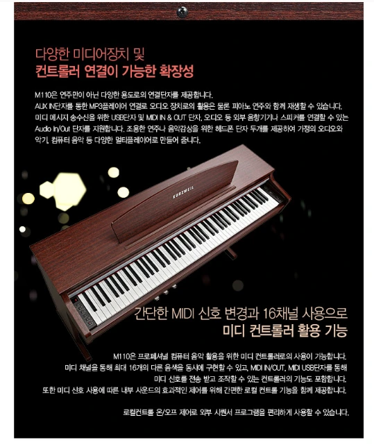 유튜브의 적혀 있는 디지털피아노 M110 소개 내용을 한땀 한땀 하나씩 받아 적어본다.