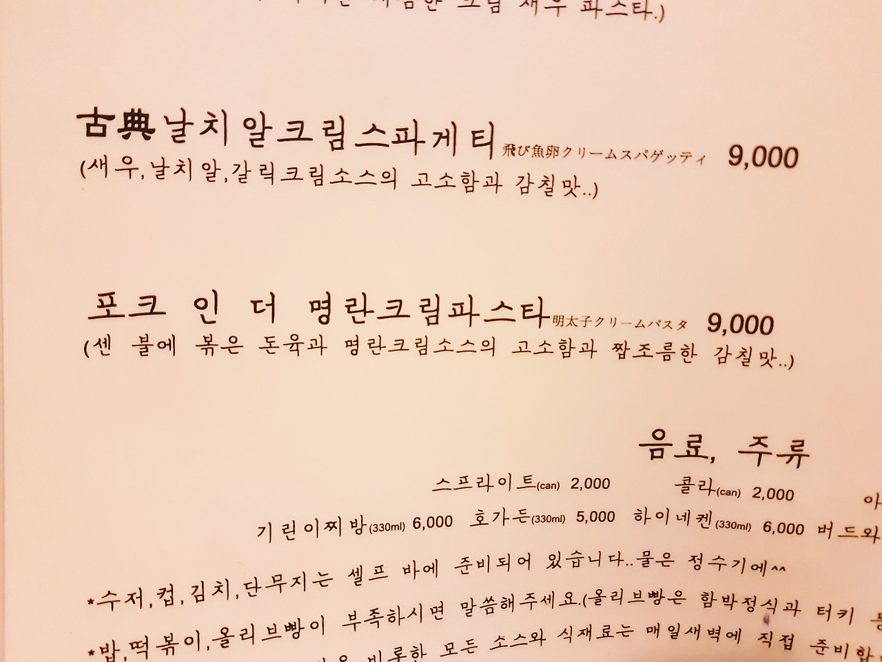 원래 명란크림파스타를 시켜야하는데 친구가 다른걸 잘못 시켰다. 그래도 맛있게 그냥 먹었다.