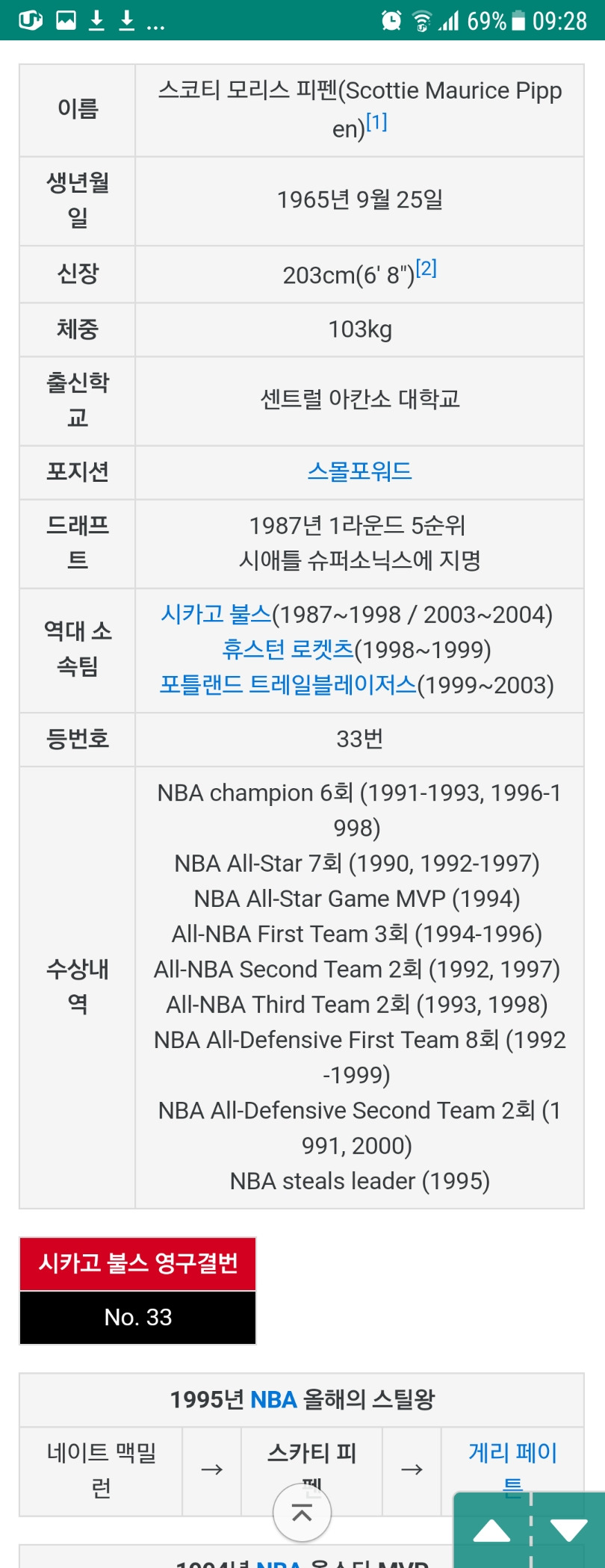 어릴적 조단을 모르면 간첩이였고, 특히 시카오불스의 조단의 단짝 듀오,스카티 피펜을 좋아했다. 그래서 나의 영어 닉네임은 pipan이였다. 등번호는 33번이다.