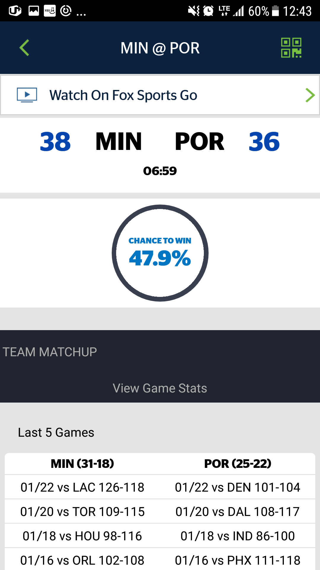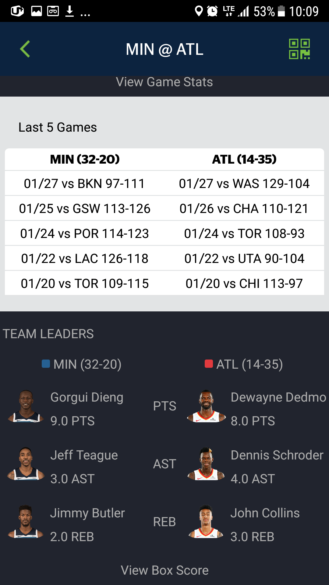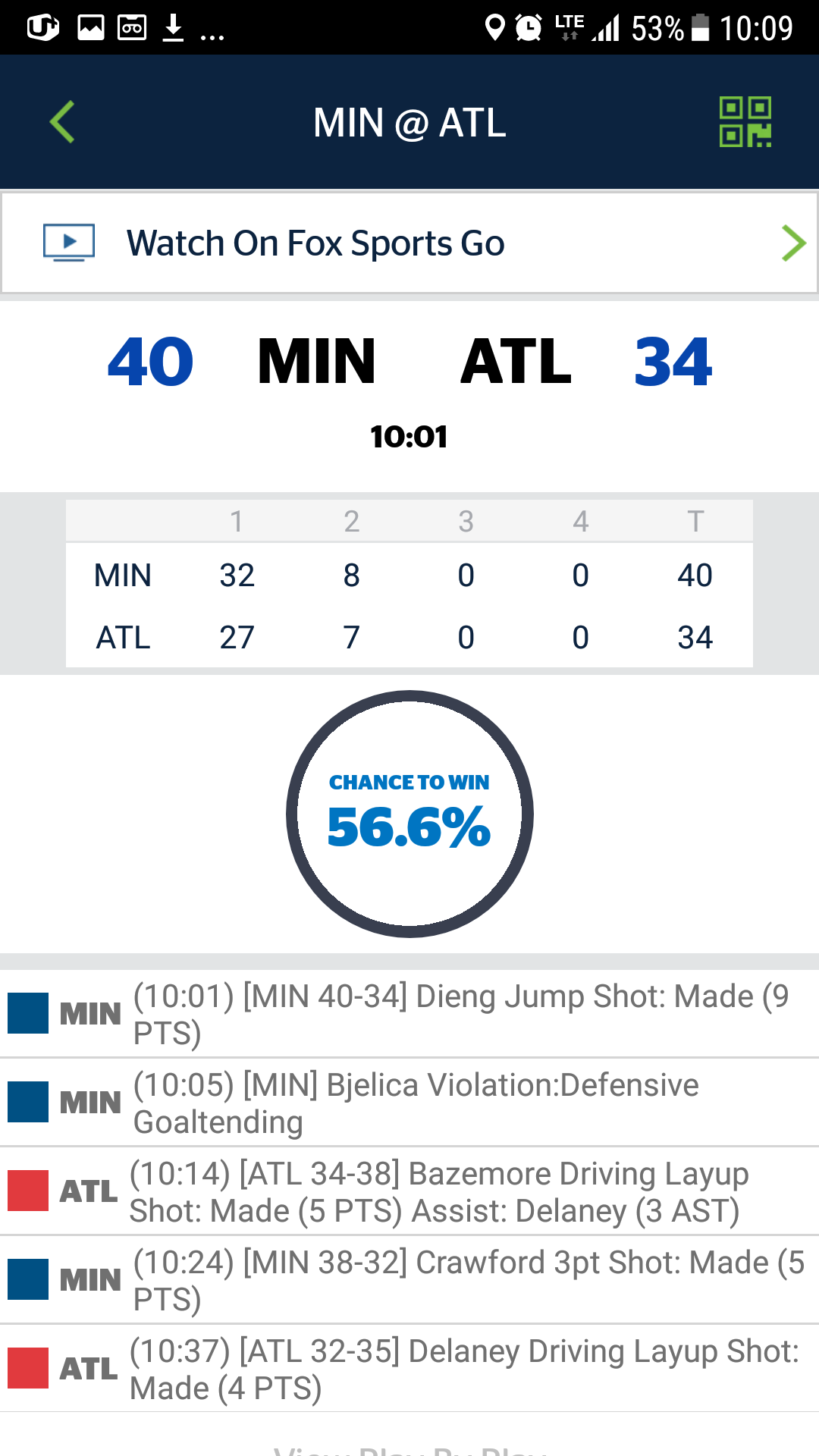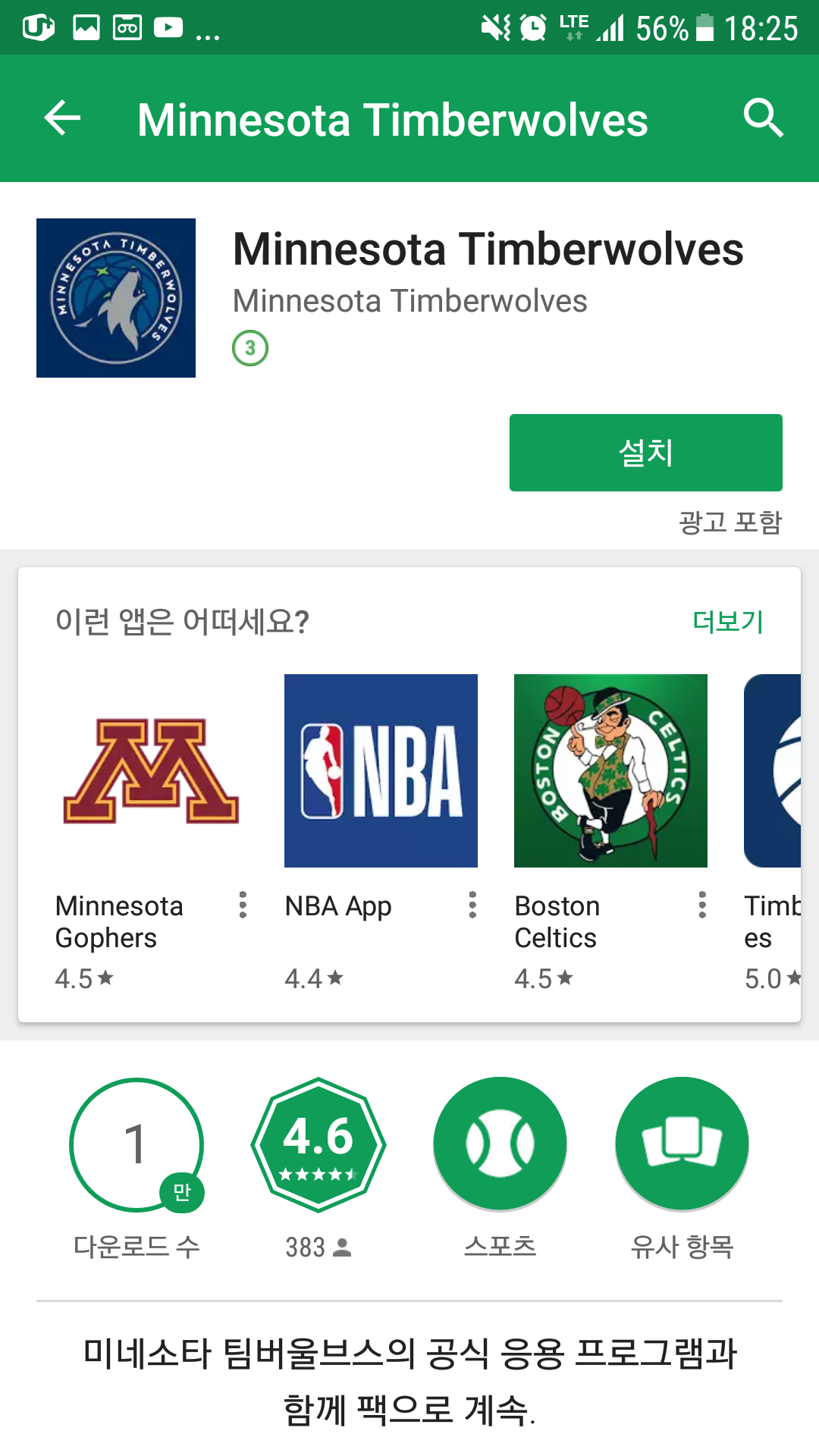 시카고의 프랜차이저 스타가 이번 시즌에 미네소타로 왔다. 그래서 미네소타 앱을 깔았다. 실시간 스트리밍 서비스는 볼 수는 없지만,