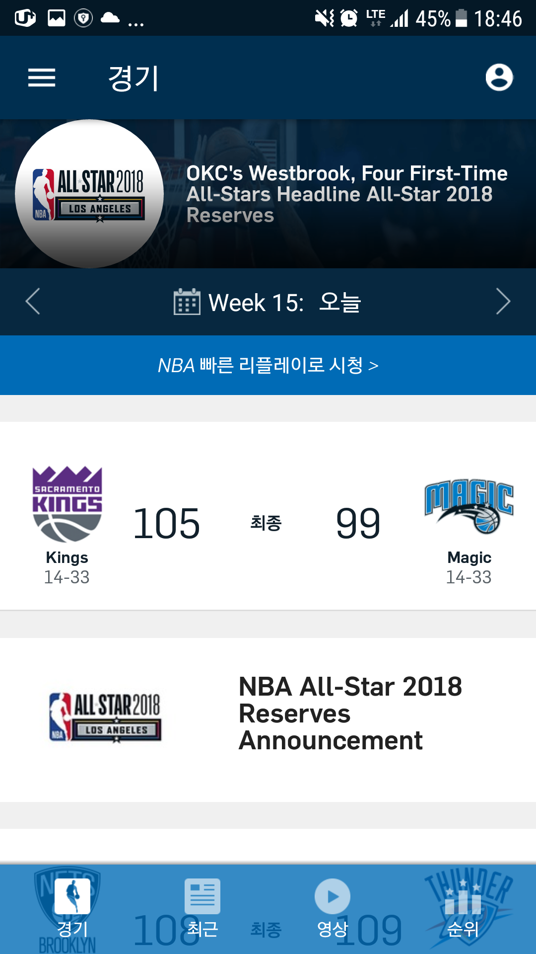 그래서 NNA앱을 깔고 스코어를 확인하거나 그날 그날 하일라이트나 멋진 슛들을 찾아보게 되었다.