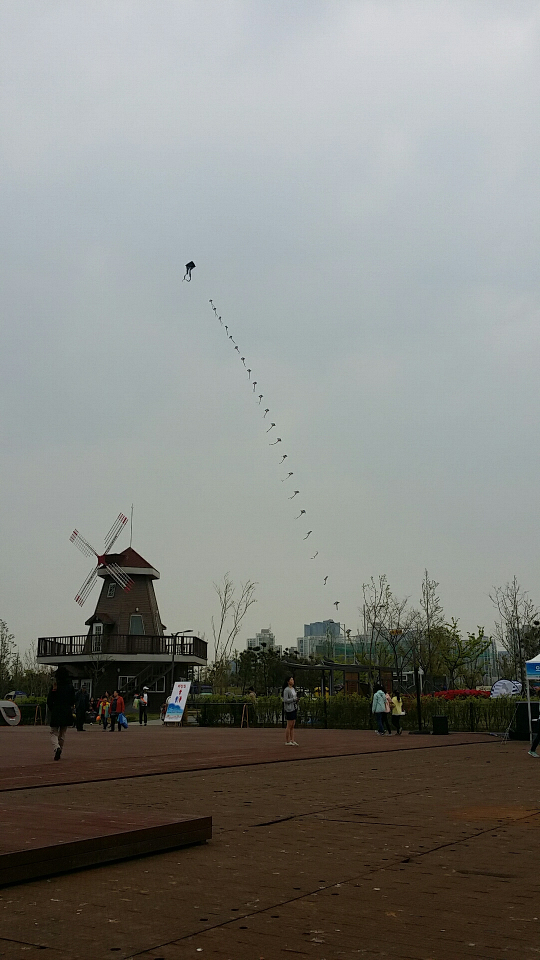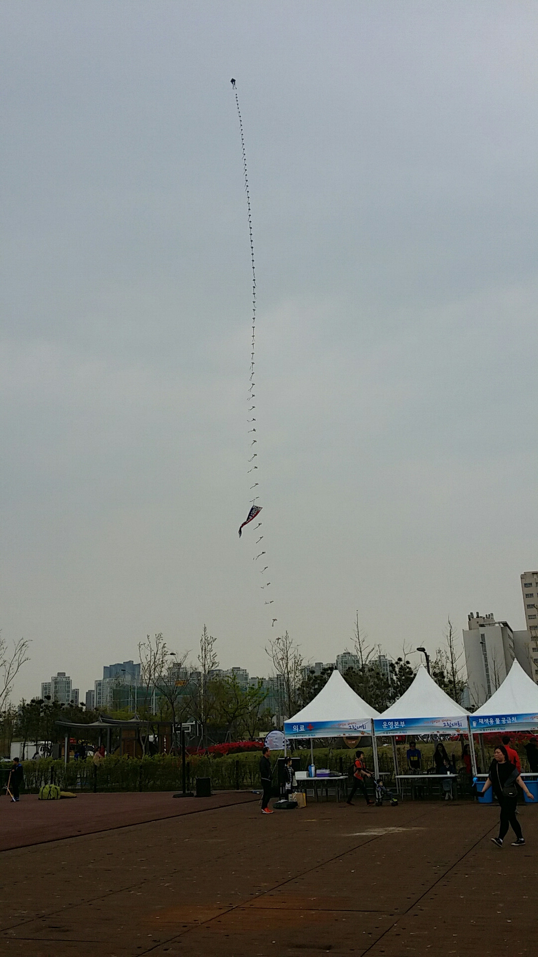 긴 연이 길게 떠 오른다. 사람들이 계속 모인다. 이미 900명이 접수 했다고 한다. 현장 접수도 받는다고 한다. 미리 온 참가자들이 바닷가에 입구에 텐트와 돗자리가 깔려 있다. 보통 보니 미술학원에서 많이 온 것 겉았다. 미술학원 차를 몇 대 보았다.