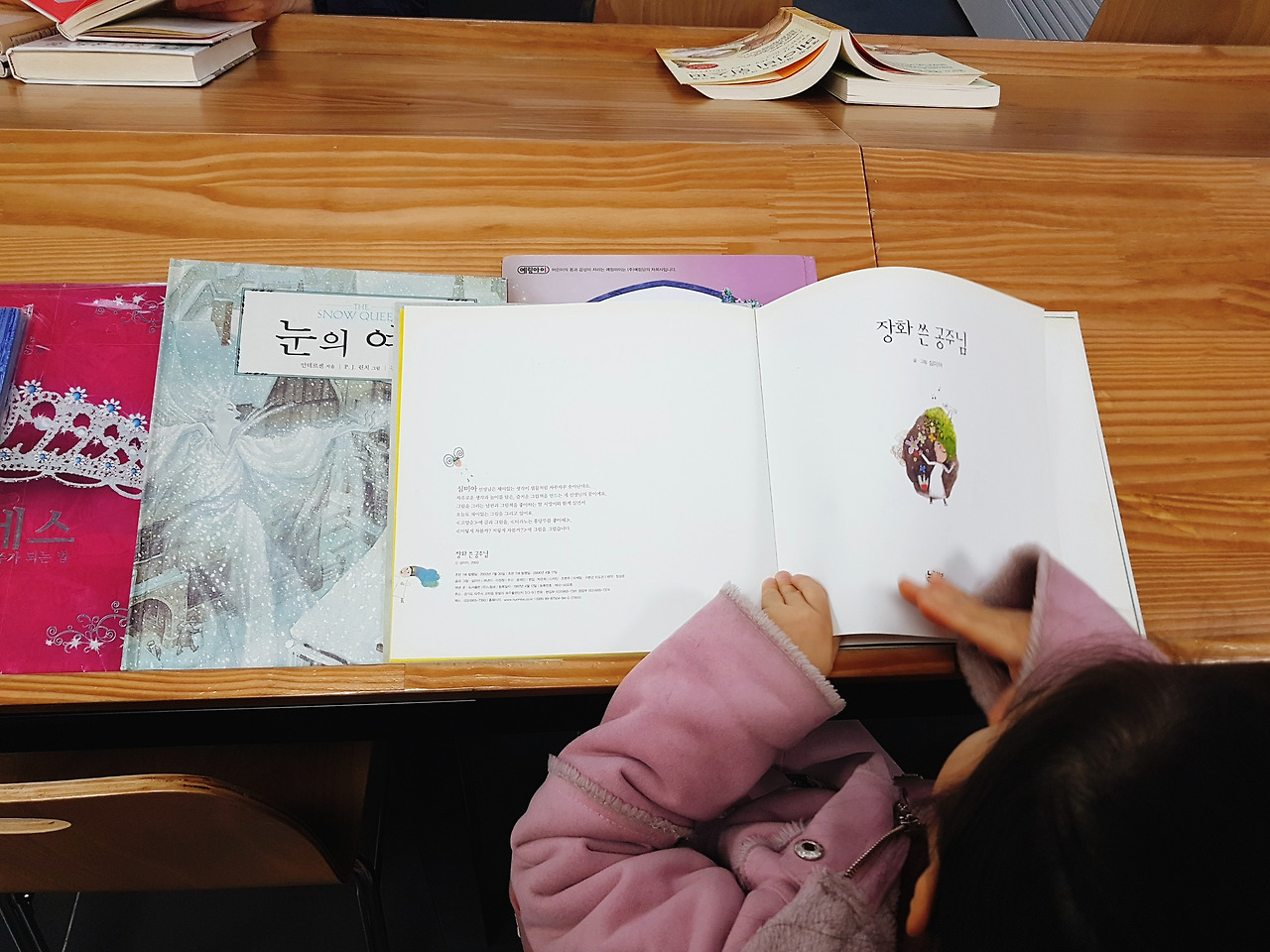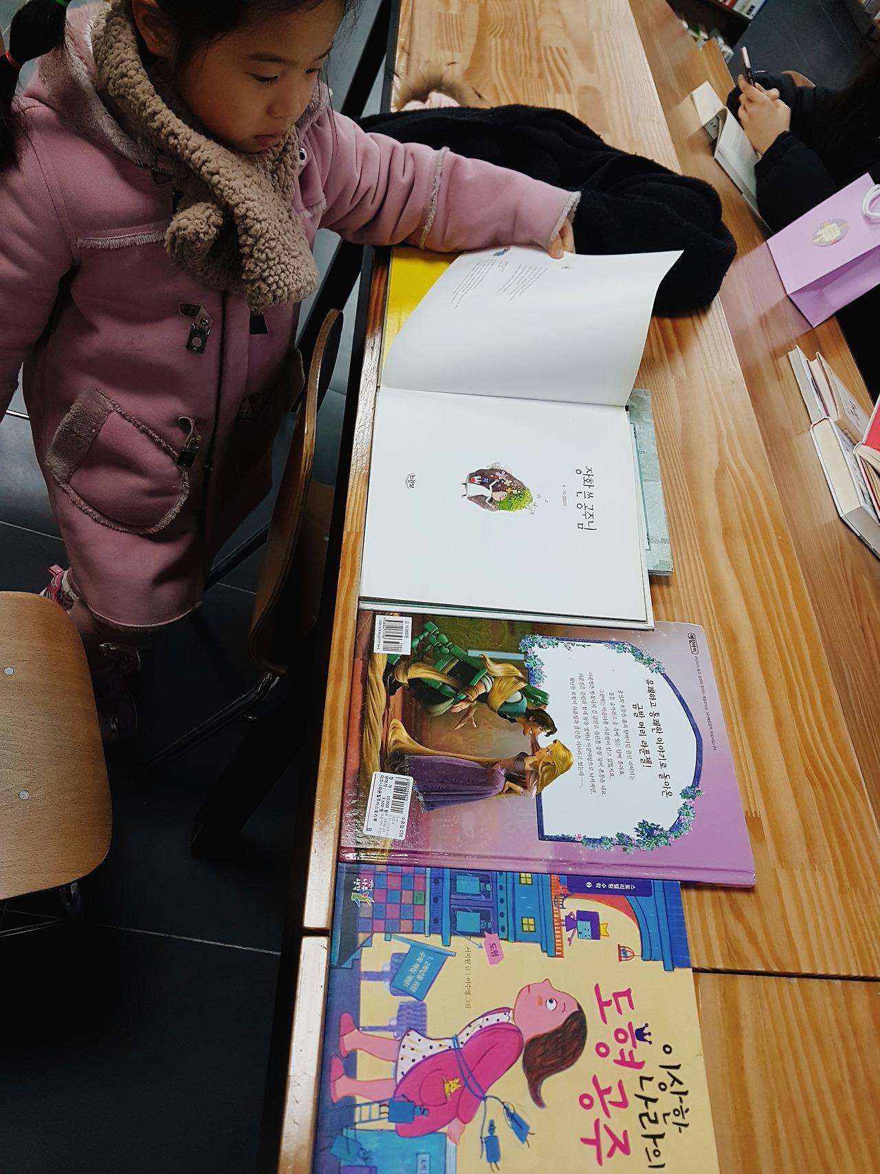 올해 6살 아직은 한글은 모르지만, 공주책을 엄청 좋아하기에 도서 검색대에서 공주책만을 검색하라고 하네요.