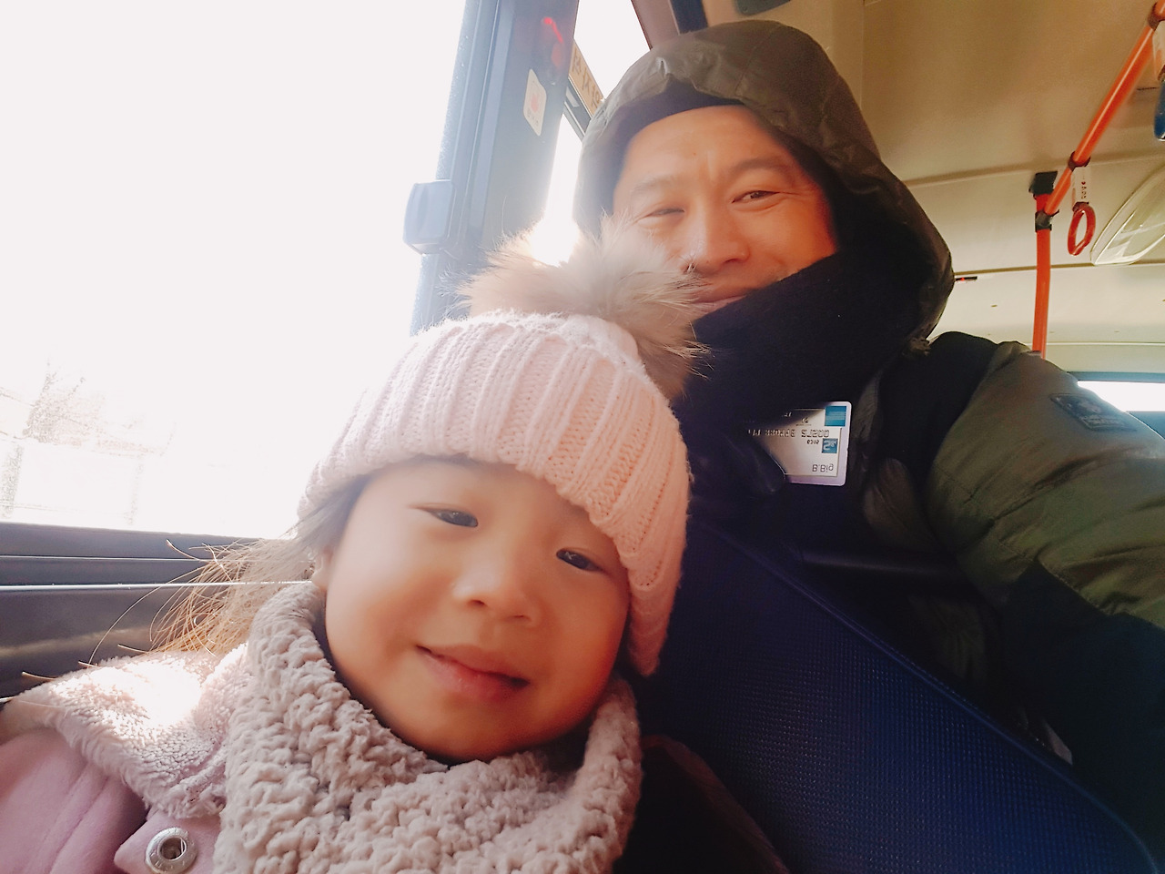 병원 갈 일이 있어 회사 연차를 내고, 오후 짜투리 시간에 날이 이렇게 춥지만 막내와 함께 나들이를 간다. 오빵하 언니는 오후 시간에 매번 수영을 배우러 가기에 매번 따라가서 엄마랑 따로 구경을 하거나 할머니집에서 놀거나 어린이집에 늦개까지 있거나 한다기에 오늘은 아빠가 섭외해 봅니다.