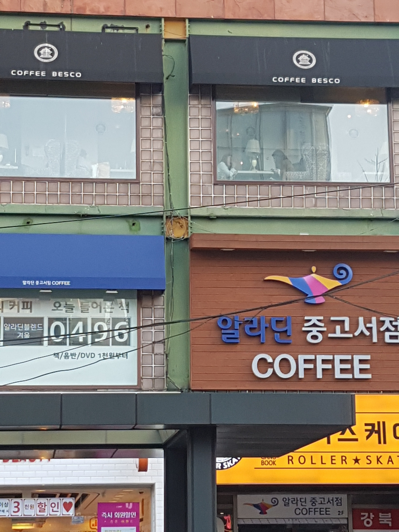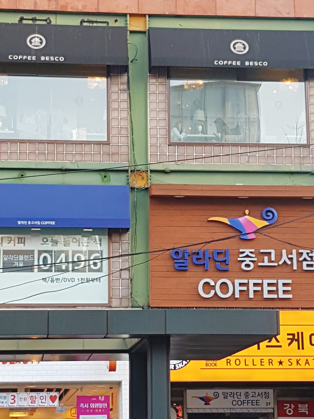 배가 고파서리 파리바게트에서 빵좀 사고, 집으로 가는 길, 버스정류장에서 알라딘 중고 한 컷 더 찍어보내요.