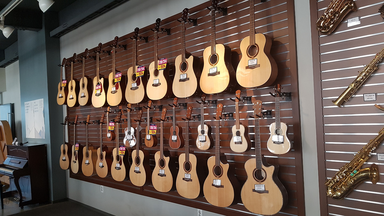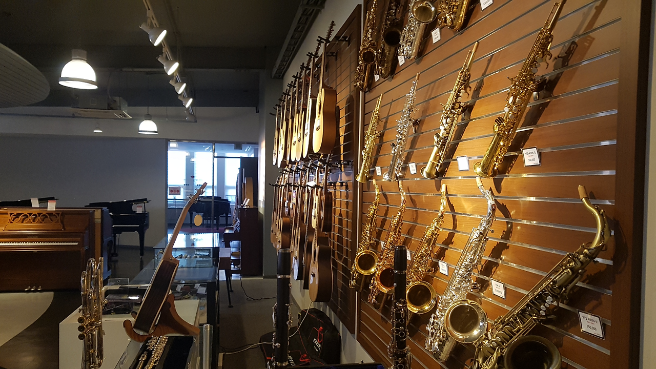 기타와 색소폰이 눈에 들어옵니다.