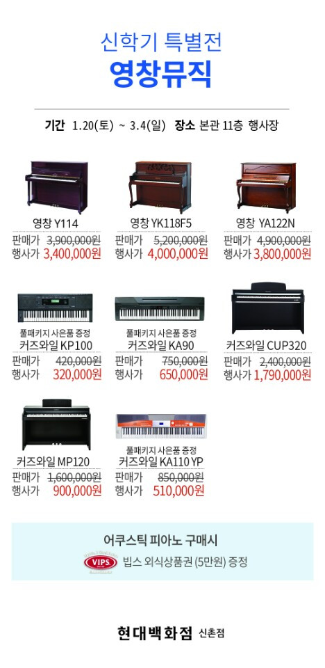 현대백화점 에스컬레이트로 쭉 타고 올라오시면 11층에서 영창뮤직 신학기 특별전이 진행 중입니다.