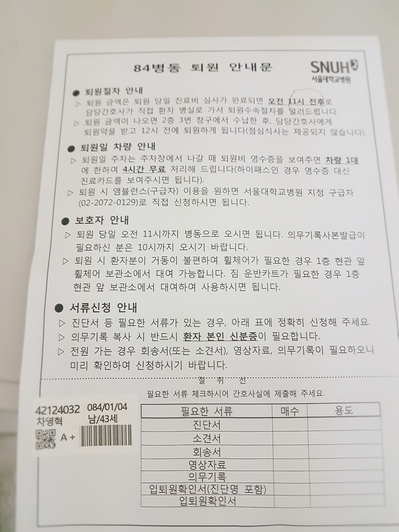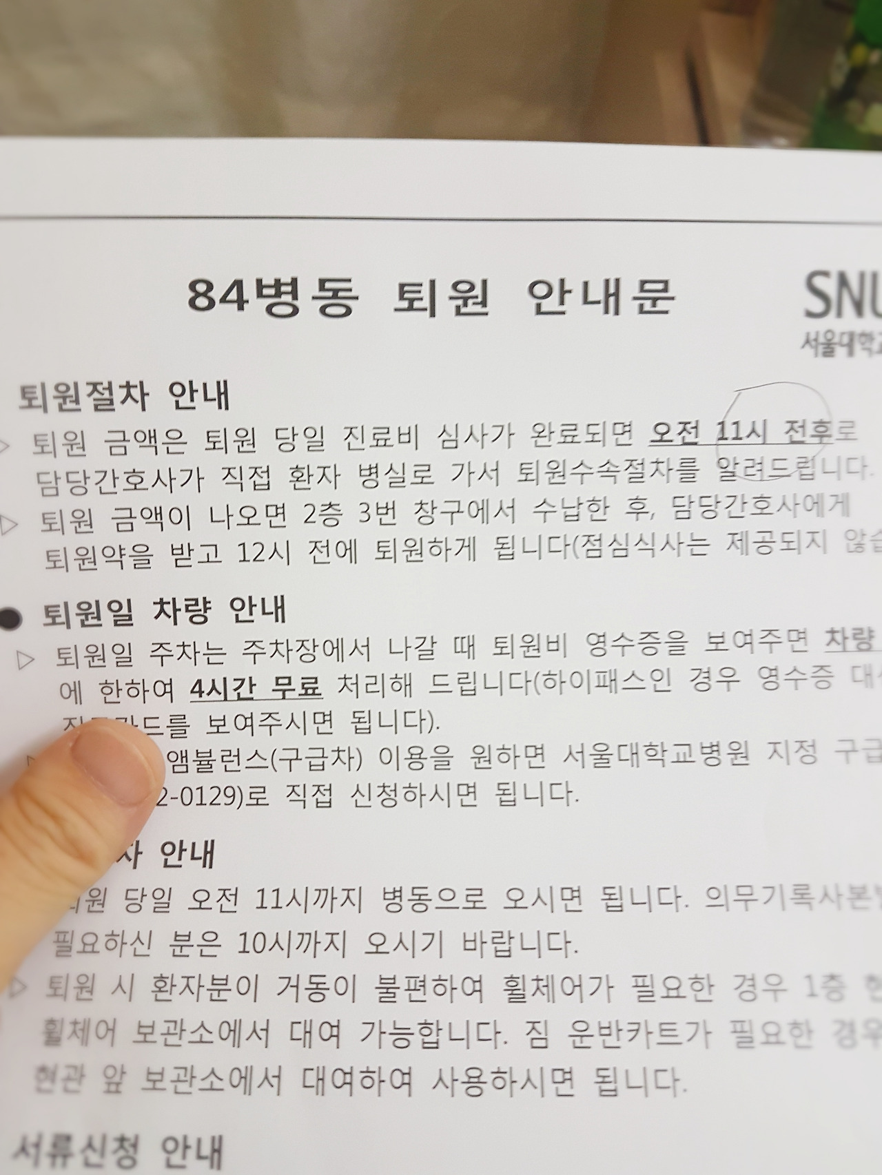 퇴원 안내문