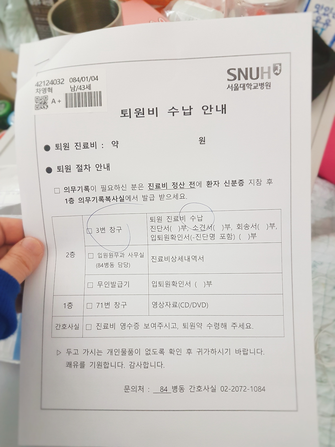 퇴원비 수납 안내