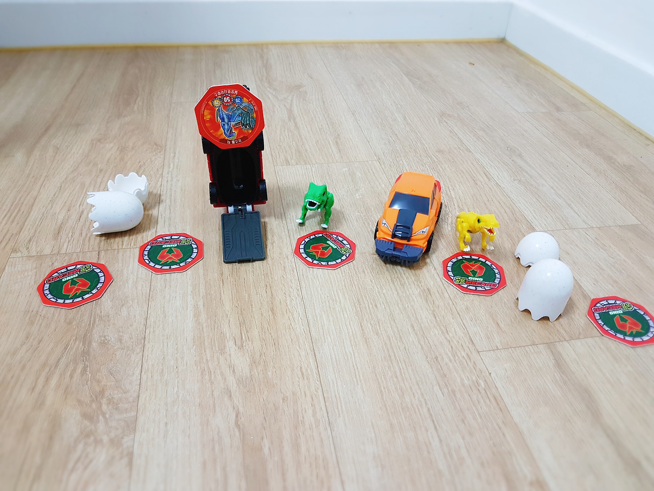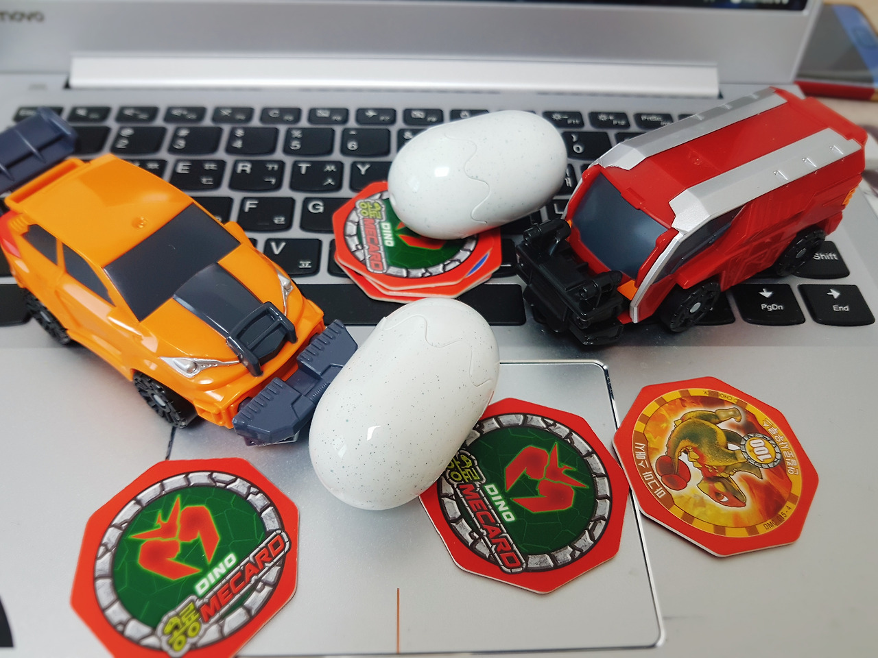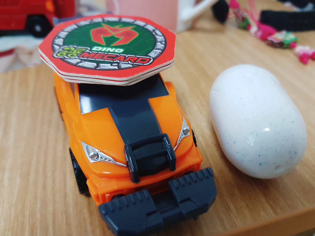 공룡은 자동차와 알에 쏙 들어가게 만들어져 있다.