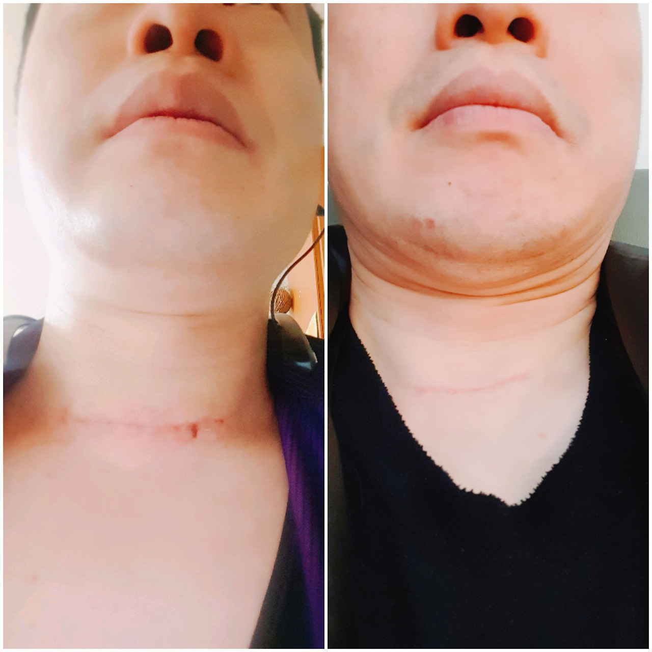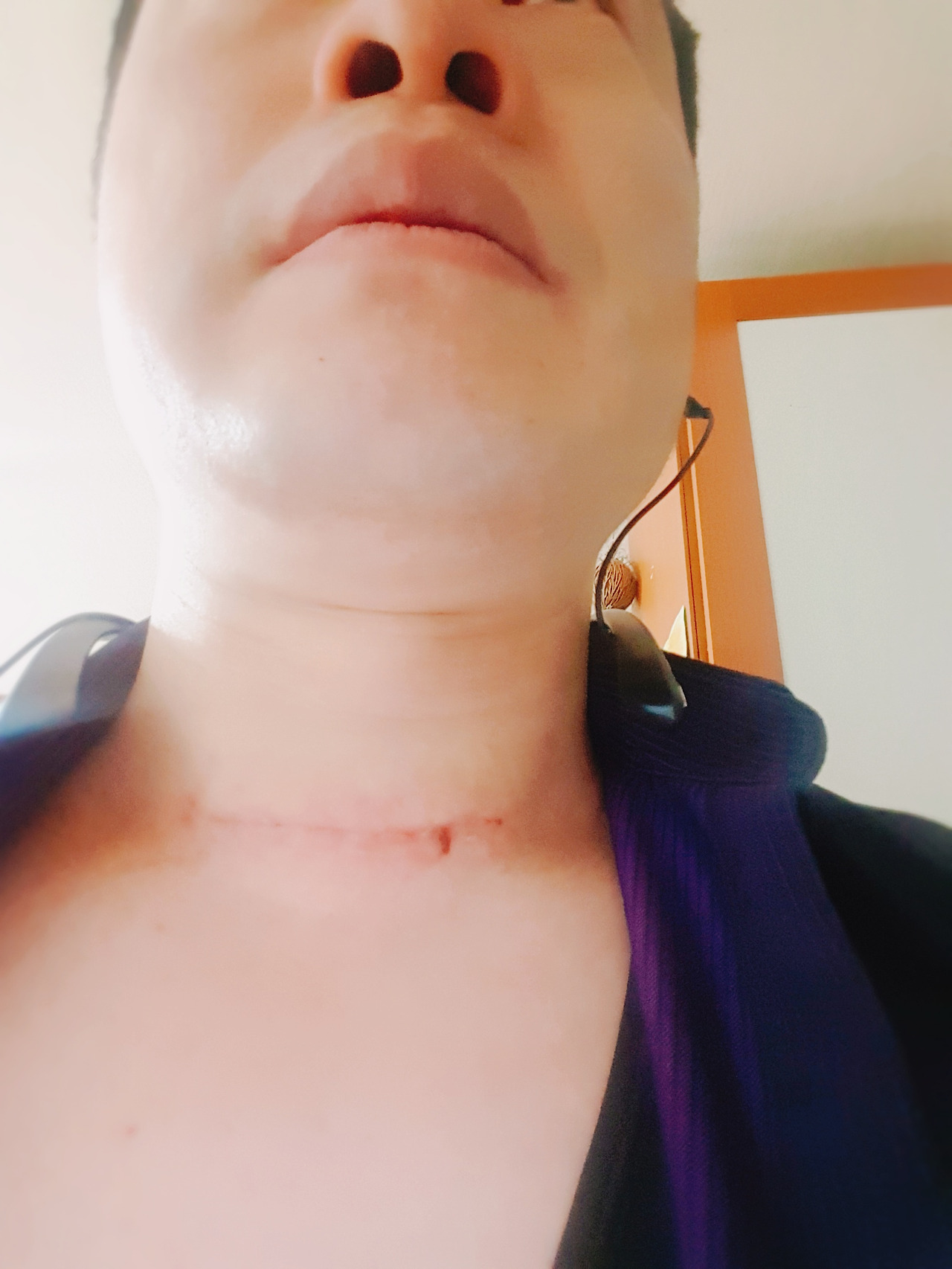 그리고 흉터 자국이다. 나도 가끔 깜짝깜짝 놀라운 흔적이다. 흔적을 보고 갑상선 수슬을 했었지 인지를 하게 된다.
