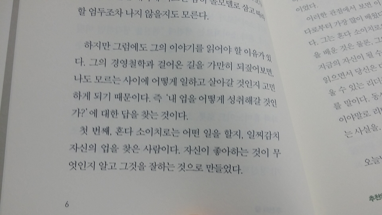 새벽부터 쉬엄쉬엄 읽었지만, 진도는 그리 빼지 못했다 . 책이 얇다고 가벼히 볼 수 없는 것이 장마다 혼다의 철학이 담겨져 있기 때문이다.