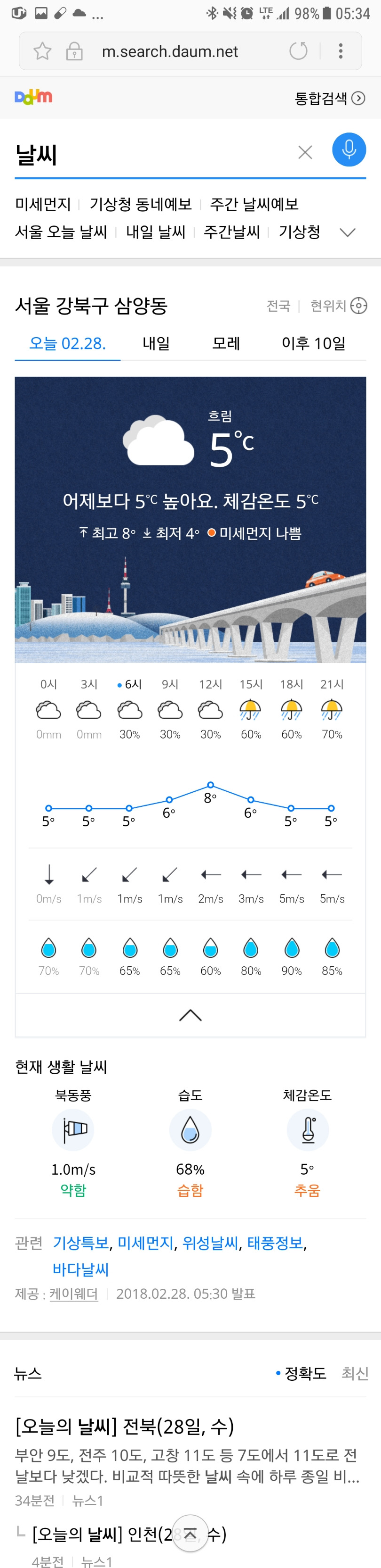 출근길 사람들 손에 우산을 보고 무의식적으로 날씨를 검색해 본다.