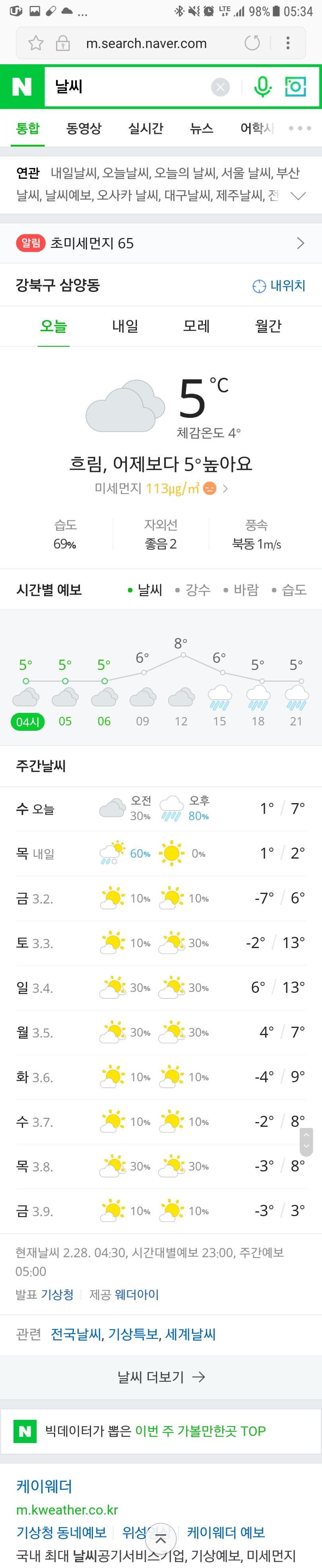 근데 실컷 검색하고 온도랑 미세먼지만 보고 정작 처음 의더였건 비가 몇시에 오는지는 대한 냉용은 깜빡하게 된다. ㄷㄷㄷ