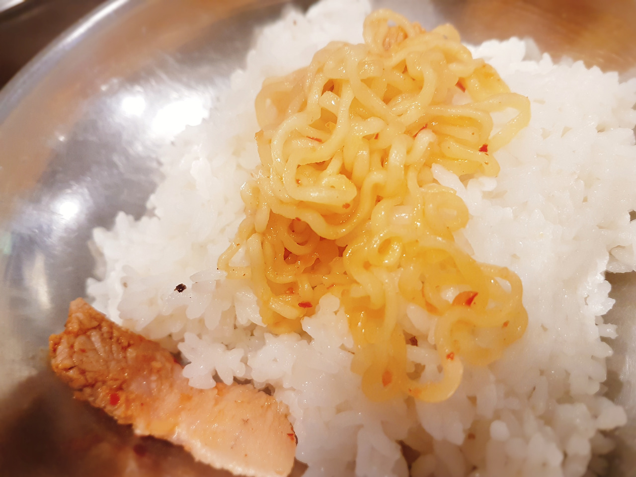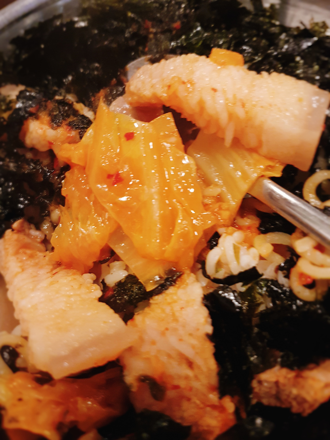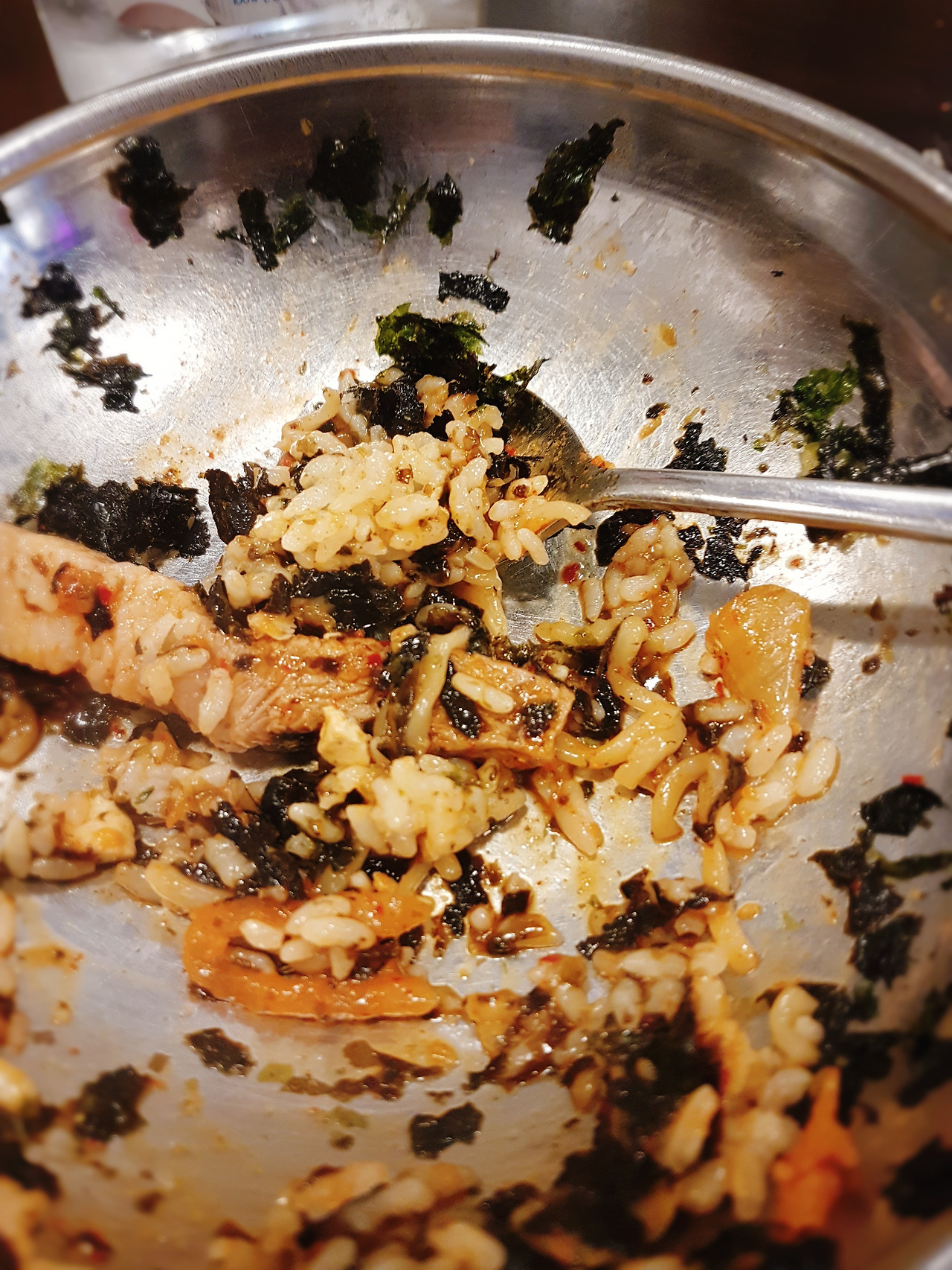 반찬이 없으니 더 김치찌개와 김가루에 집중한다.