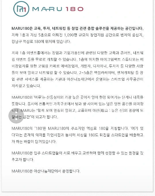마루180,마아크암펙트,코워킹스페이스,역삼,대관