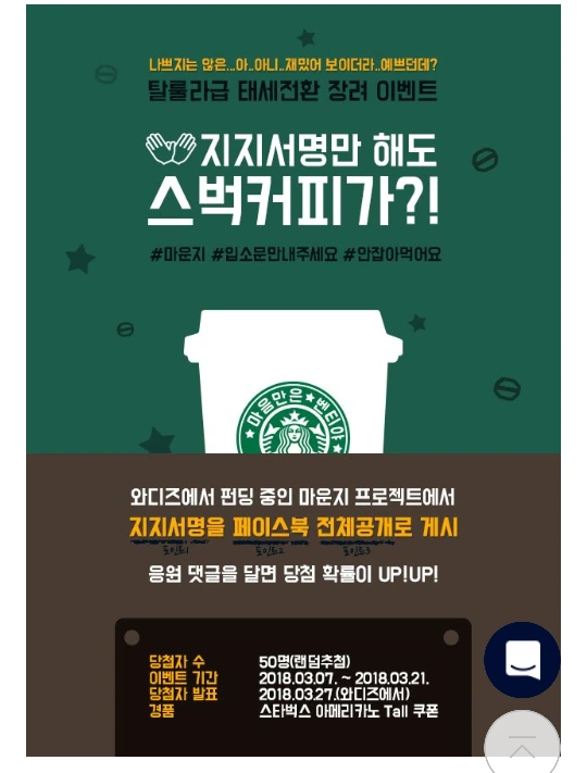 와이즈 지지서명 스벅커피 이벤트도 진행중이다.