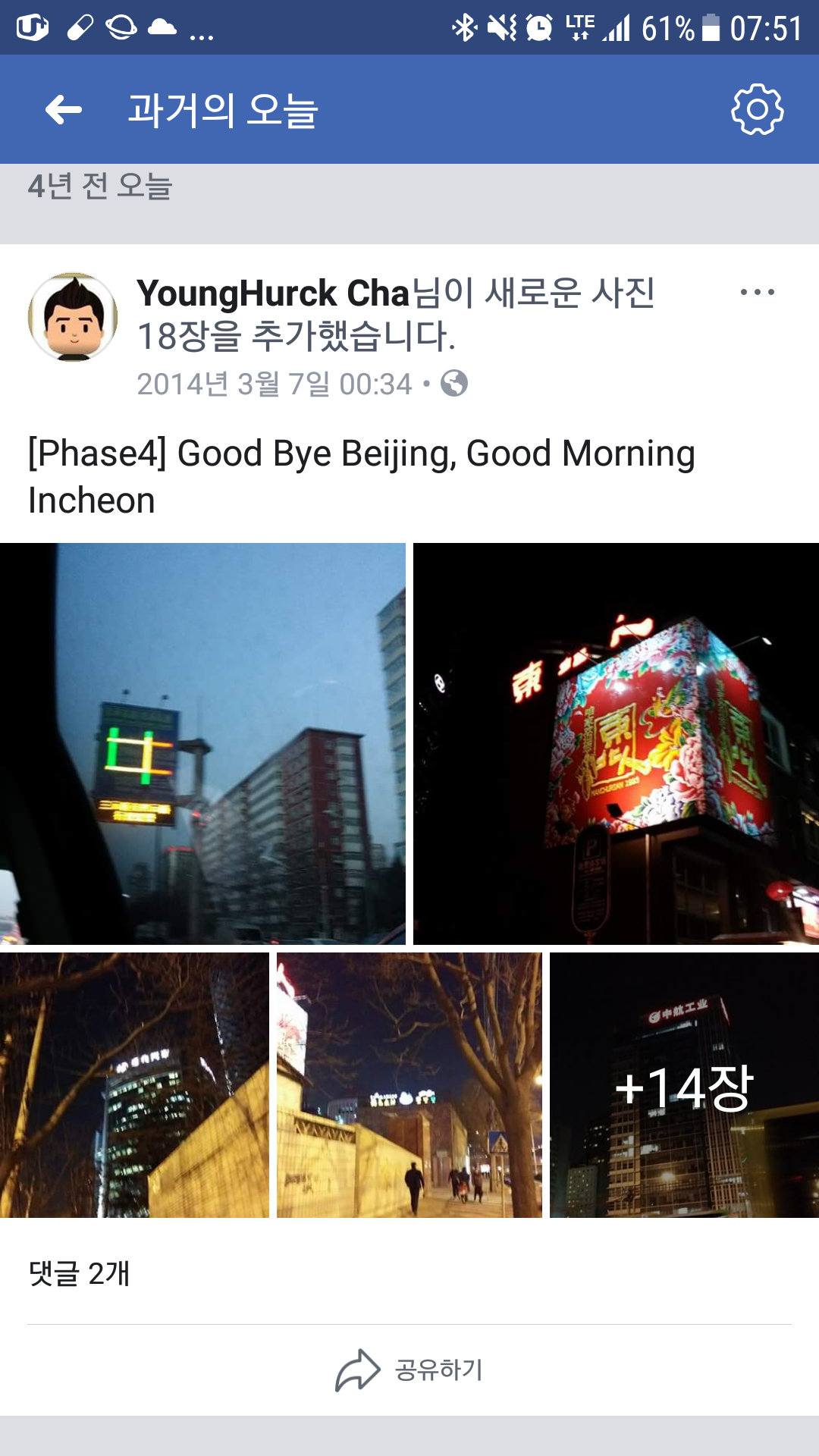 페이스북,페북,타임머신,4년전,발자취,북경,베이징