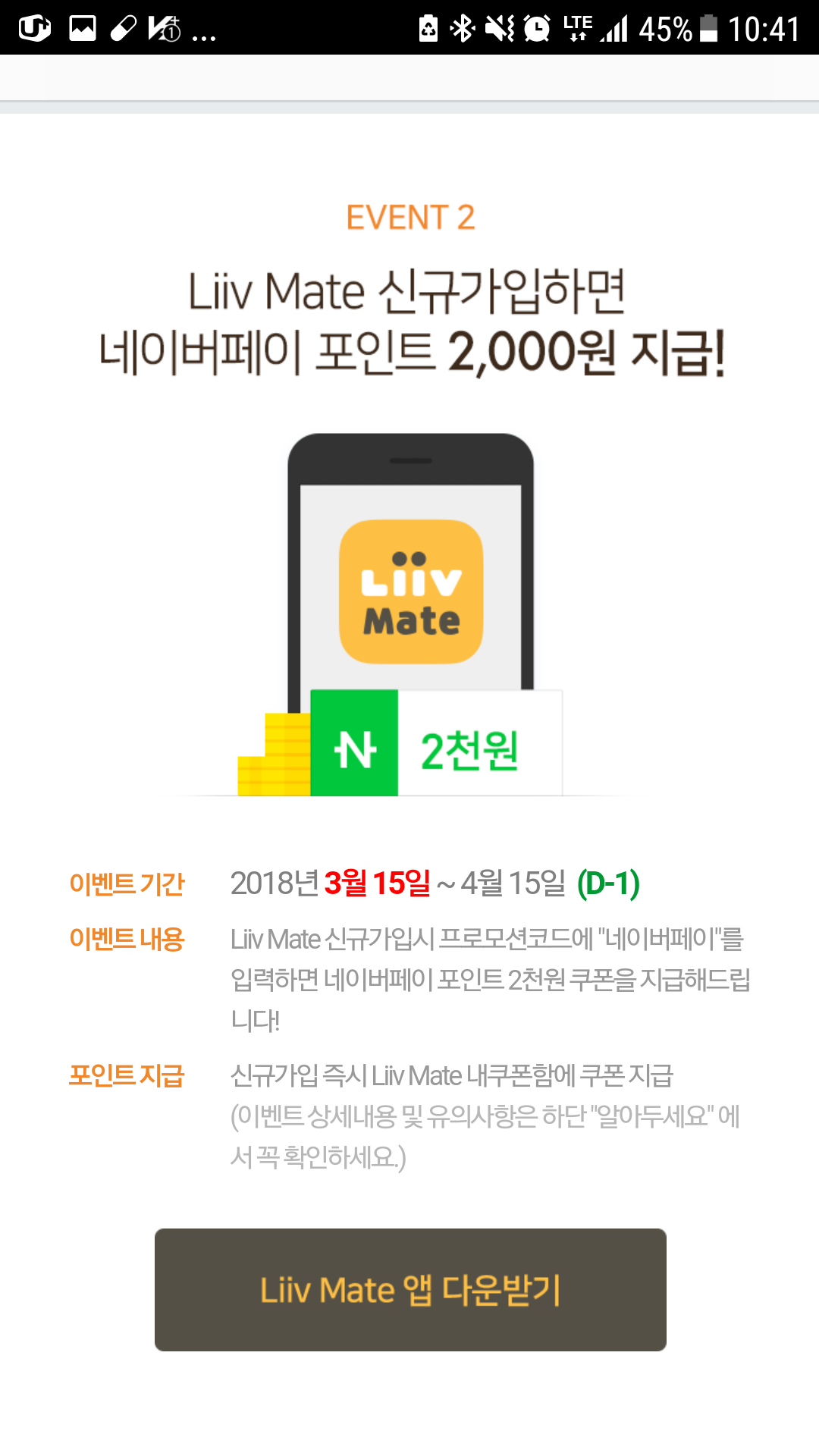 리브메이트 첫고객, 신규고객에겐 내이버포인트 2,000원을 준다. 리브메이트 고객확보측면에서도 나쁘지 않다.