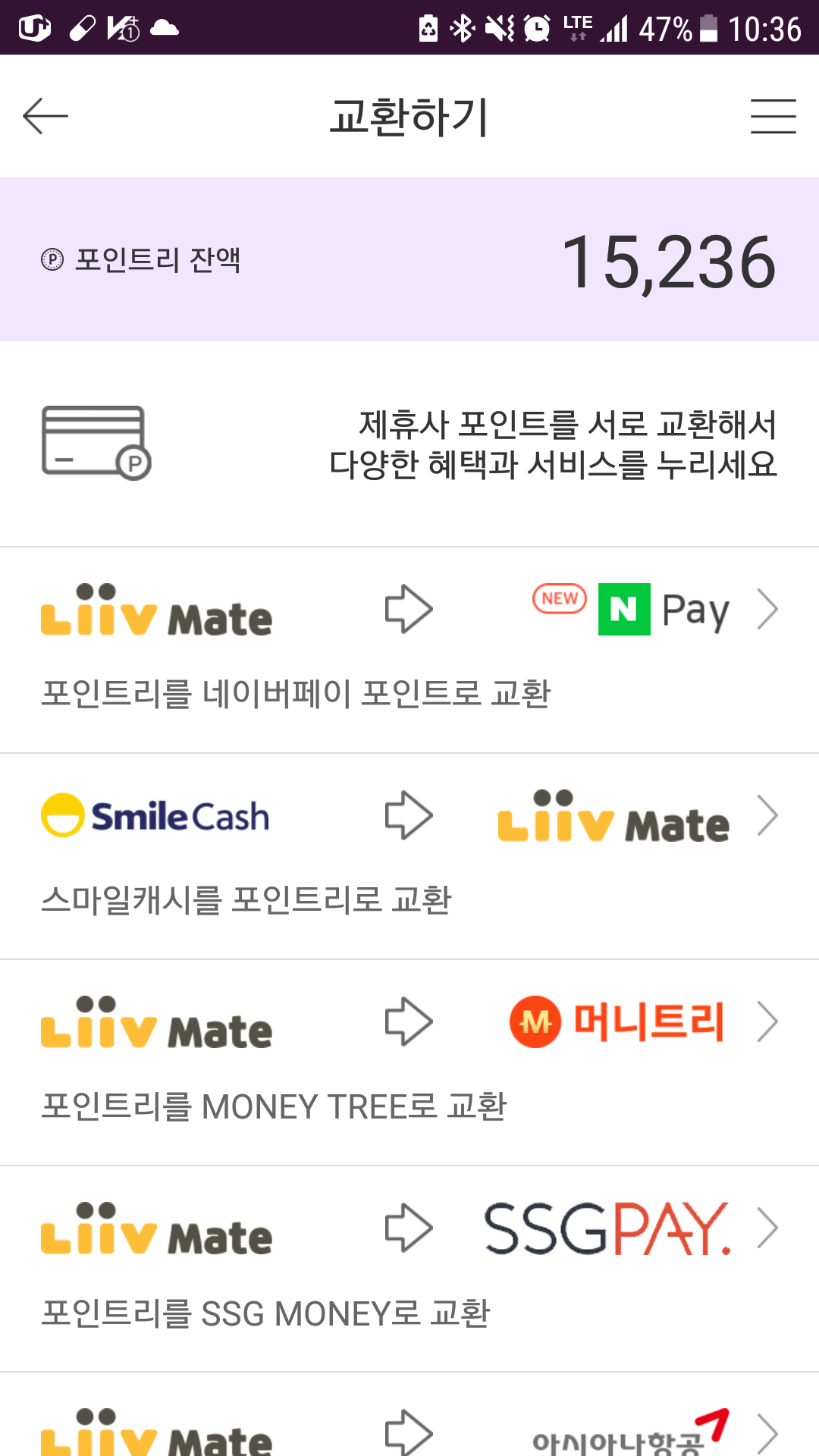 리브메이트를 보니 이미 여러곳에 포인트 전환이 가능하다.