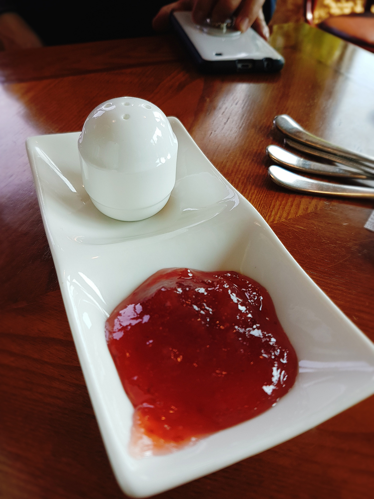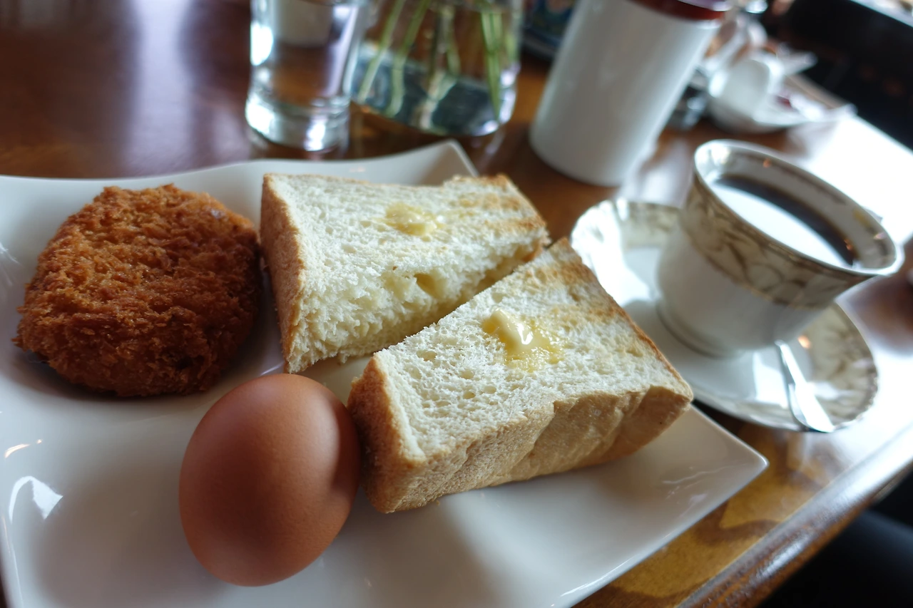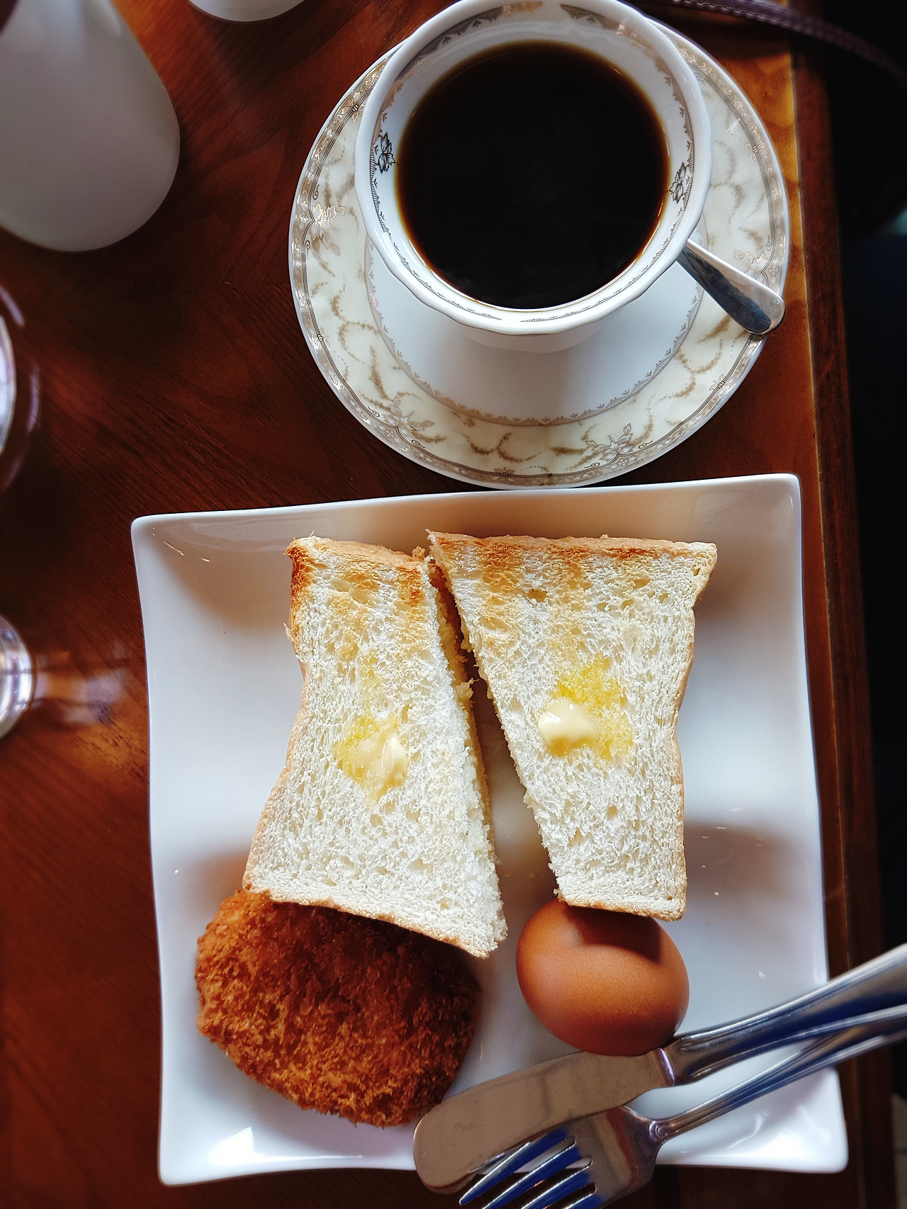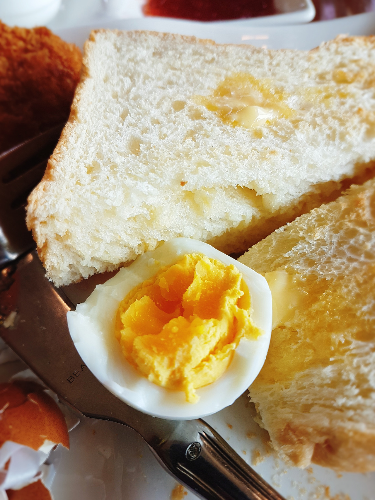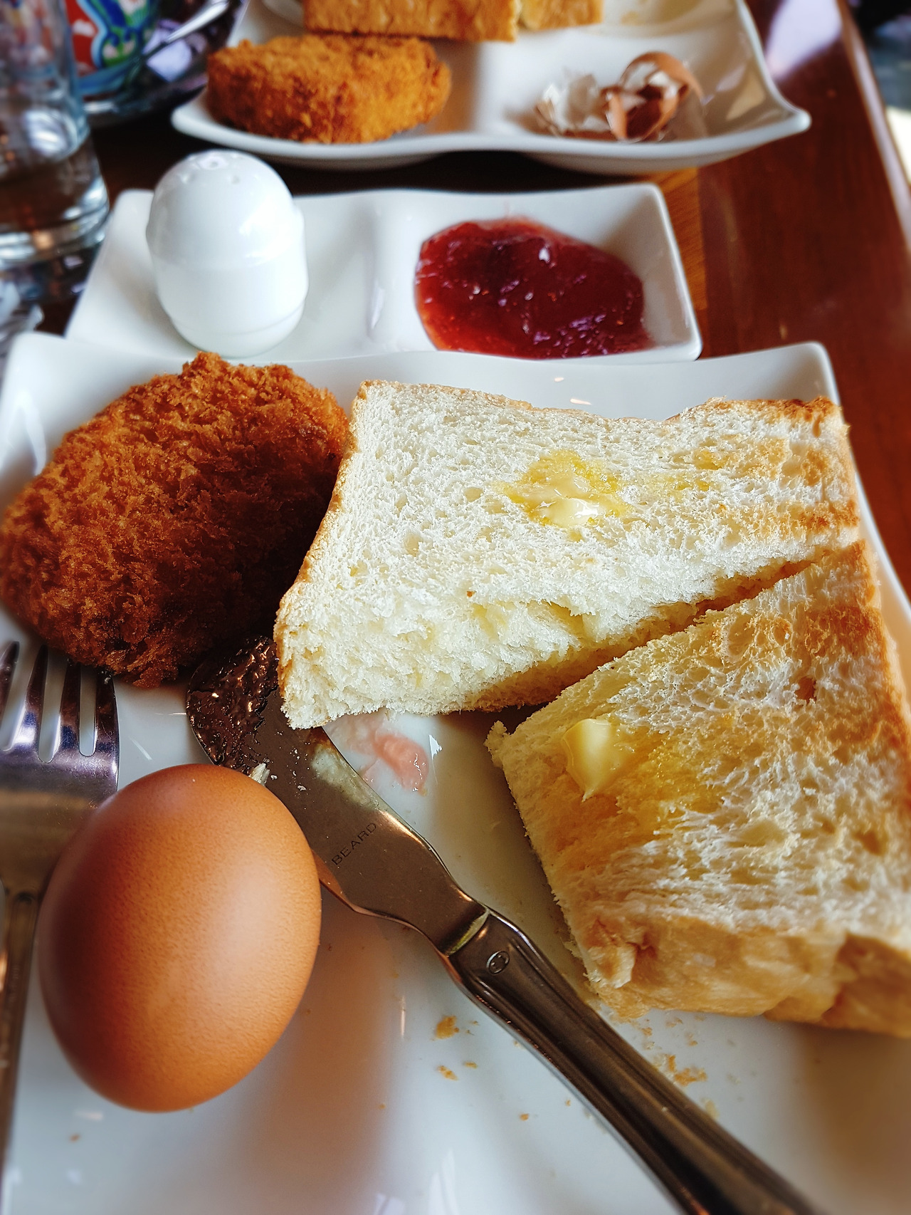 커피와 빵, 딸기잼, 삶은 계란, 고르케 특히 고르케는 엄청 뜨겁다.