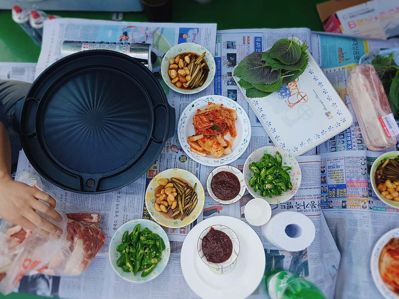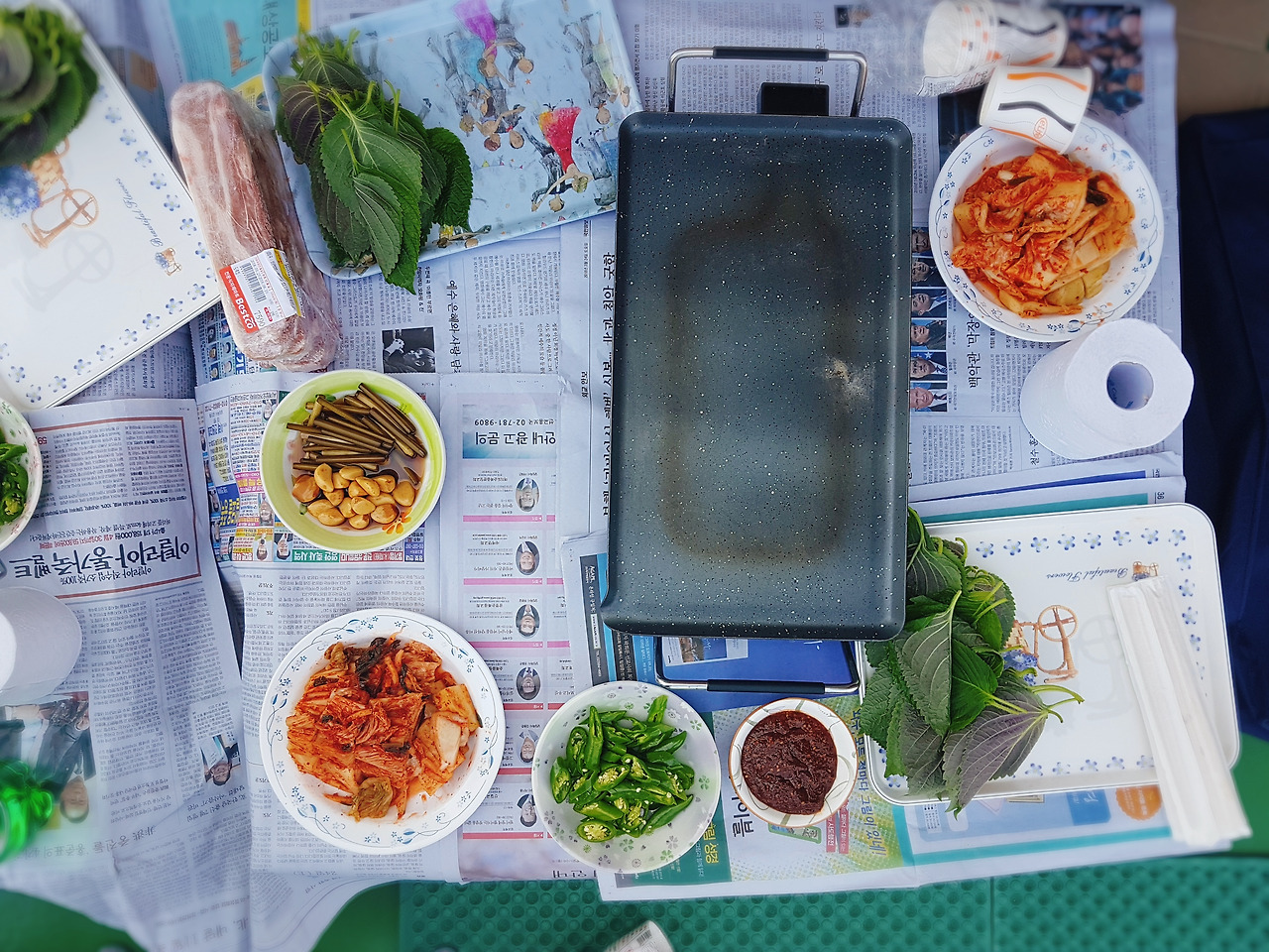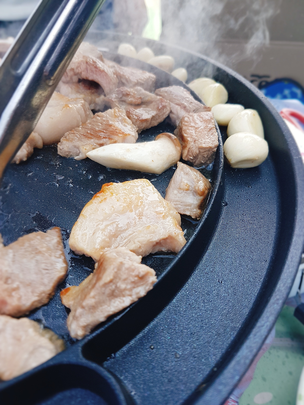 많은 인원이라 삼겹살을 집에러 꾸버먹는 것이 가장 효율적인 식사였다.