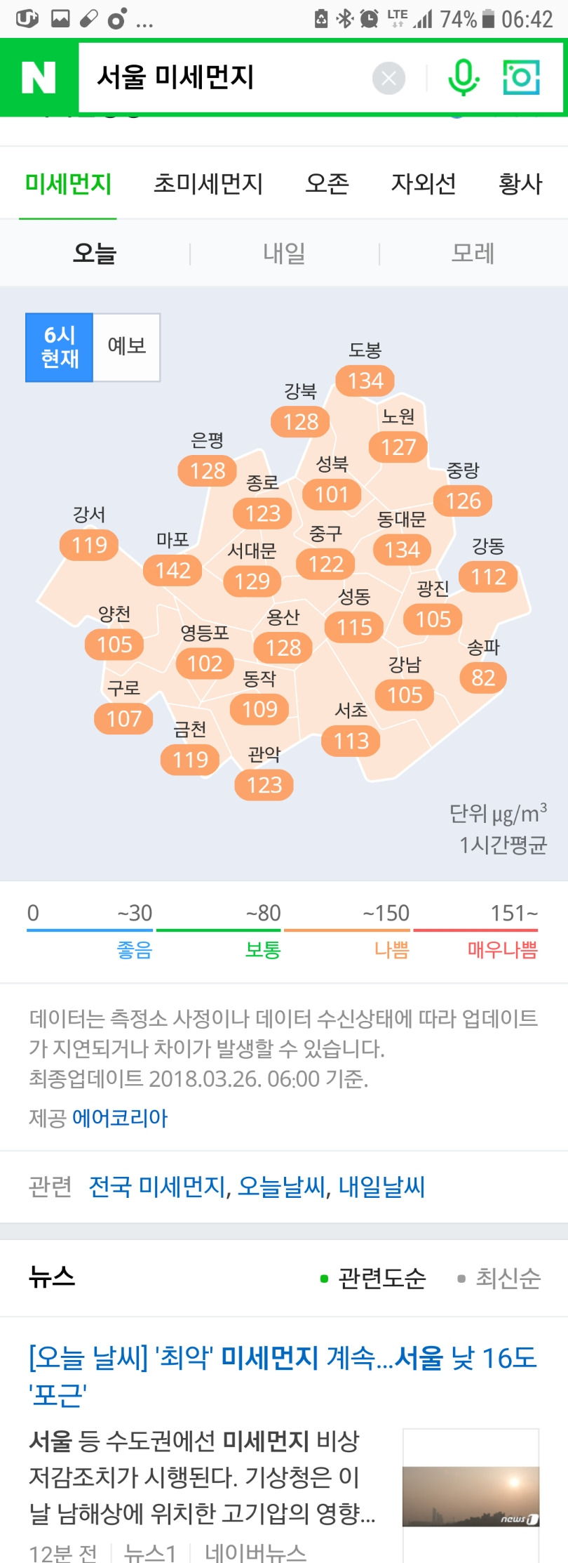 출근길에 미세먼지가 나쁨이였다가 좋아진다는 이야기를 접한다.