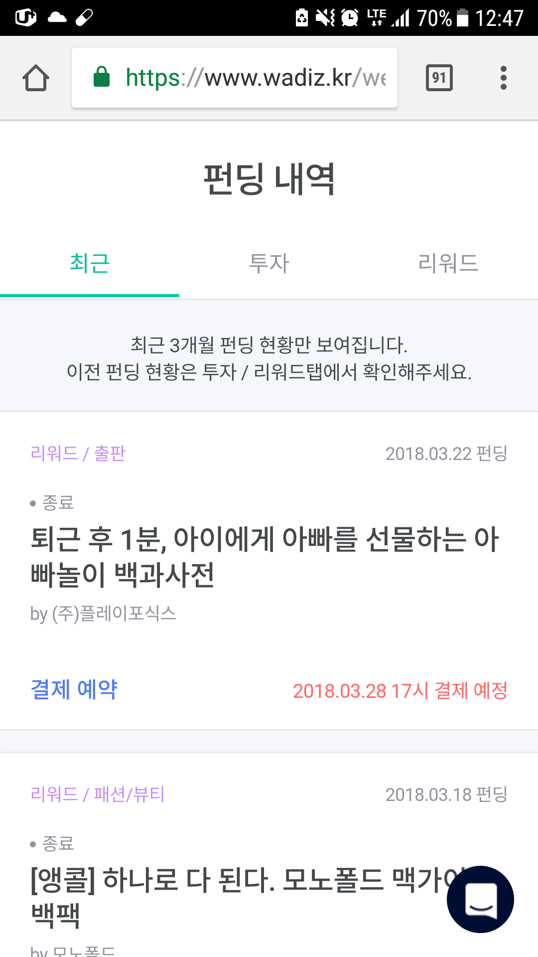 나의 최근 쇼핑몰은 와디즈다.