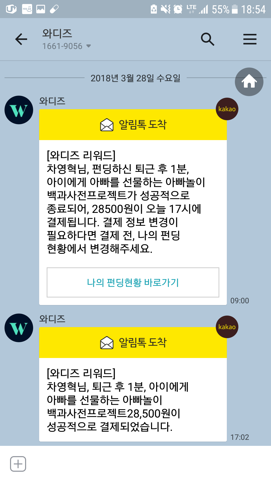 - 결재결과가 카톡으로 왔다.