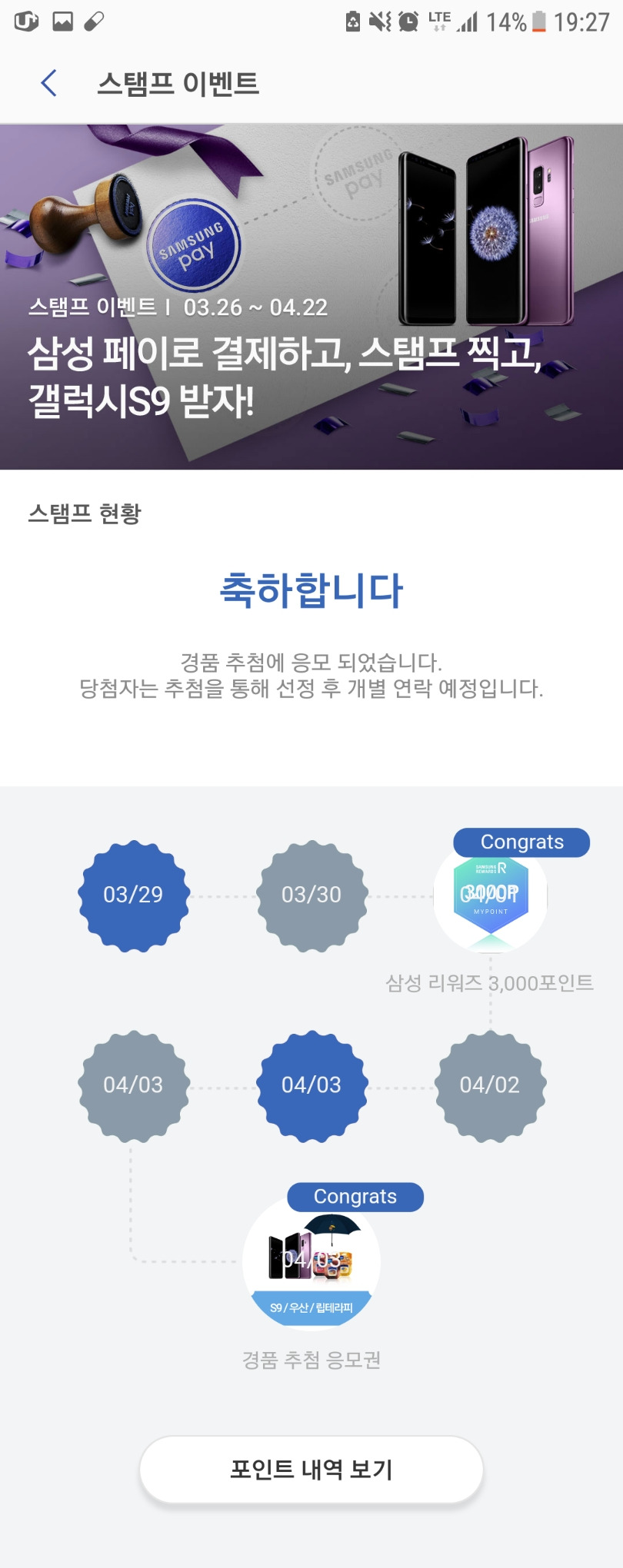 삼성페이스템프 3회만 해도 3,000원 포인트 이기에 할만하다.