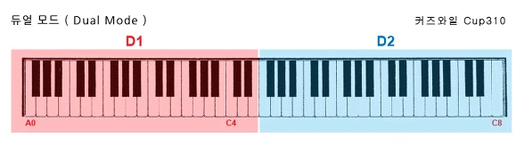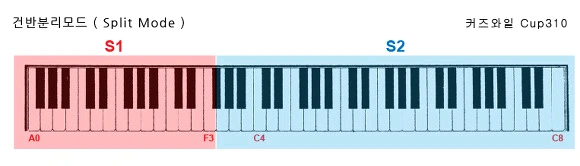 듀얼과 유사한데 음색의 영역이 듀얼은 고정되어 있다면 SplitKey로 따로 설정이 가능하다.