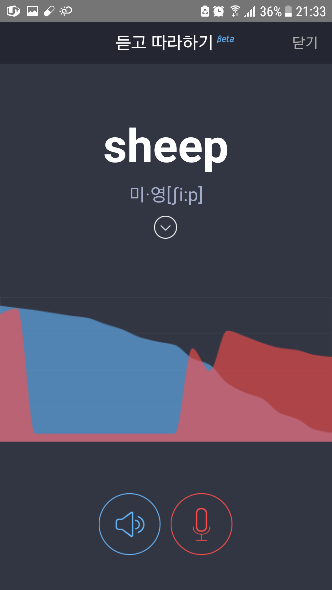 4.직접 녹음 나의 발음 형태가 그려지고 비교됨