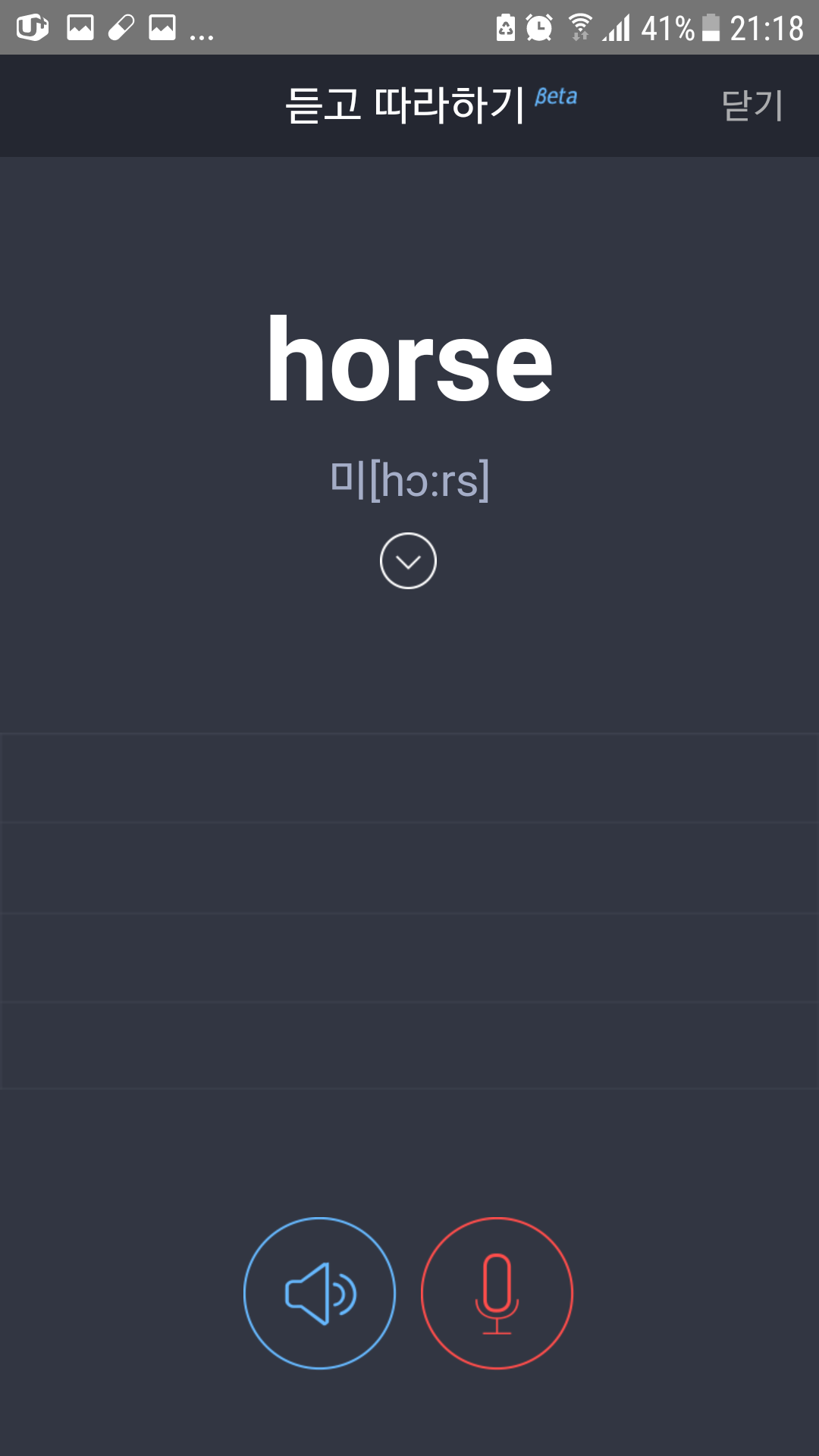 원어민 Native발음이 필요하여 네이버를 찾는다. 그런데 발음 재생만이 아니라 듣고 따라하기라는 기능이 있었다. 물론 앱을 다운 받아야 한다.