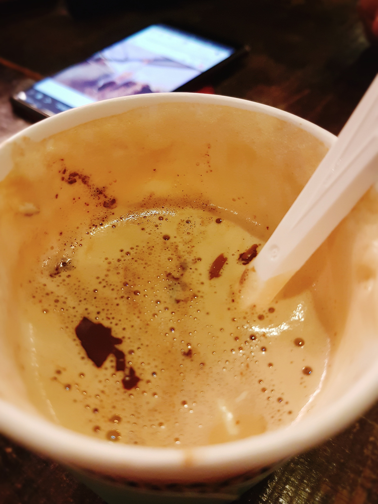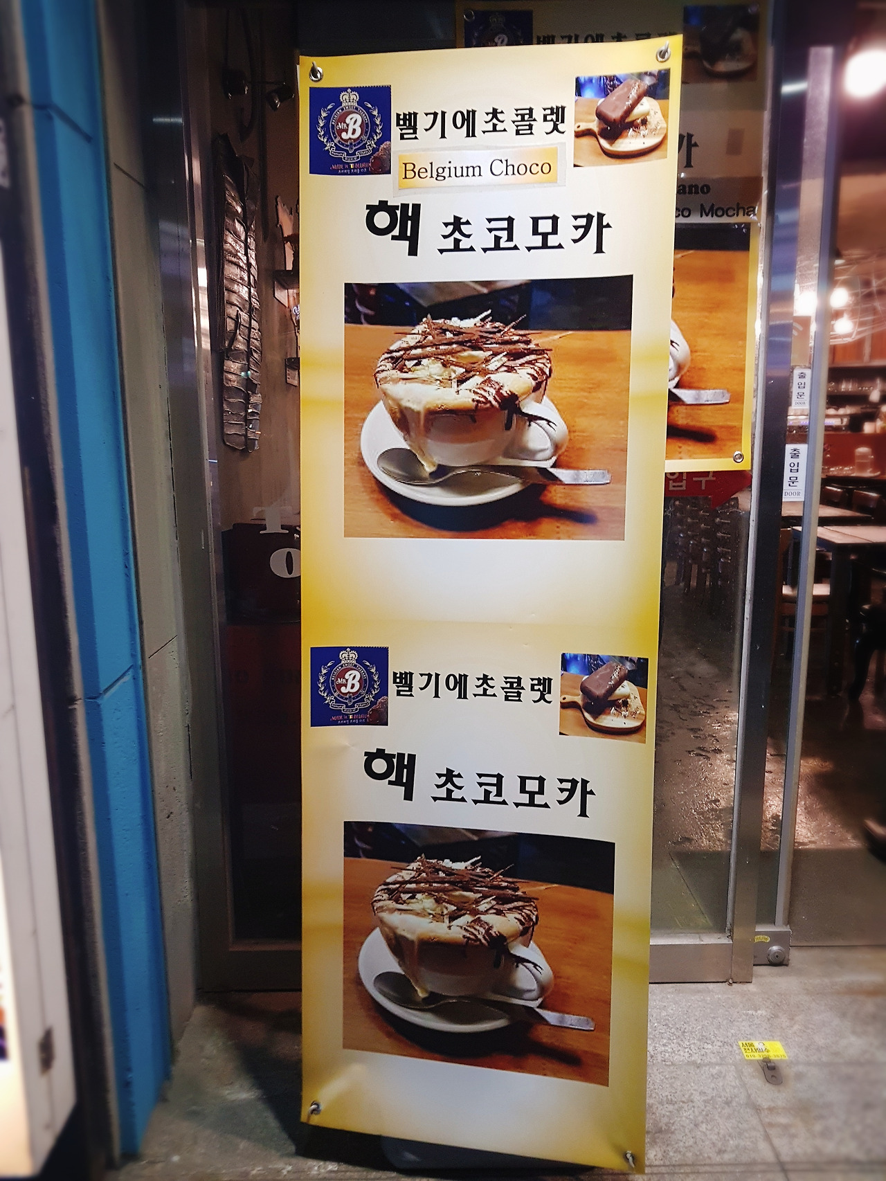 식후 느끼리해서 바로 옆에 커피솦으로 간다. 커피를 끊었는데. 모카가 들어가 있는 핵 초코모카를 시킨다.