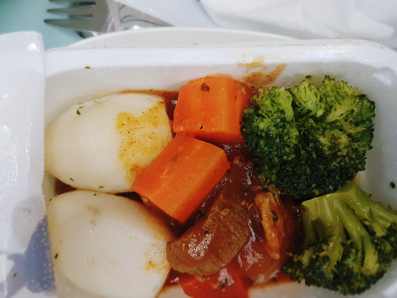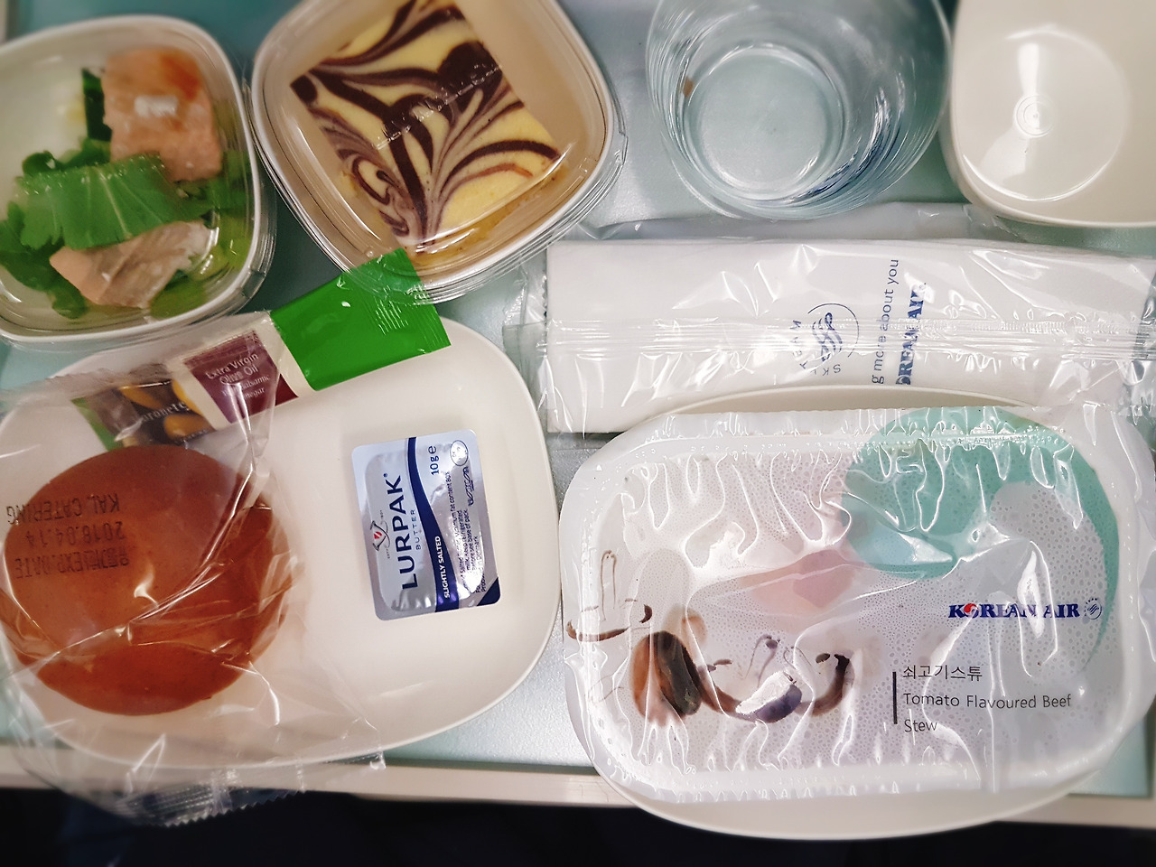 첫 기내식은 양식으로 쇠고기와 어쩌고